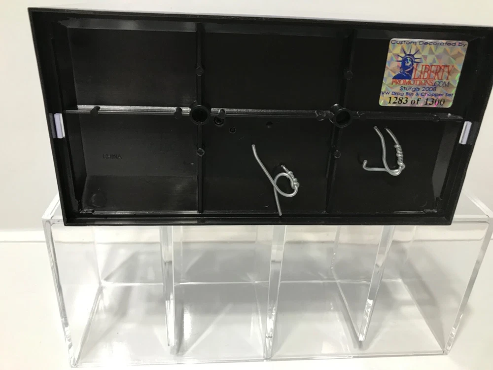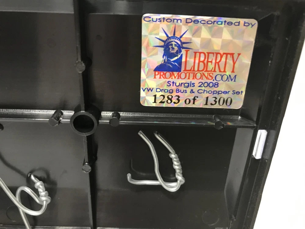 2008 Hot Wheels Sturgis VW bus and chopper with skull designs. Number 1283 of 1300 by Liberty Promotions. Perfect condition in case.