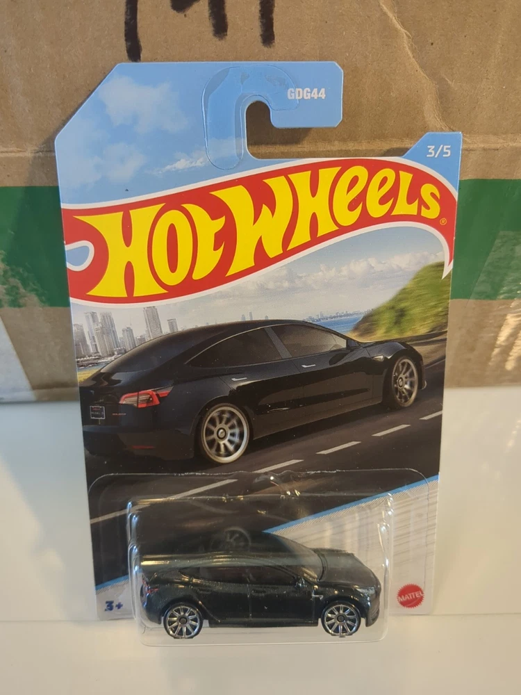 Introducing the Hot Wheels Tesla Model 3 in sleek black, a part of the Luxury Sedans series available exclusively at Walmart. This 1:64 scale diecast model is a true representation of the iconic Tesla Model 3, with intricate details that highlight the car's modern and stylish design. The model comes in an unopened box, making it a perfect addition to any collection or display. The Hot Wheels Tesla Model 3 is a great gift for car enthusiasts of all ages, from kids to adults. Its special edition features and high-quality material make it a durable and valuable collectible. This model is a must-have for fans of Tesla and diecast cars alike, and it is sure to impress any collector or enthusiast. See pics for condition