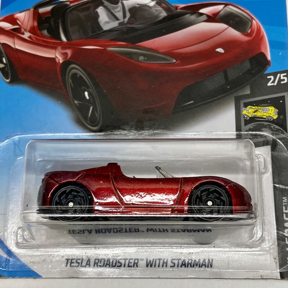 The Hot Wheels Tesla Roadster with Starman is a 1:64 scale diecast car from the Hot Wheels Space series. Released in 2017-2018, this red Tesla Roadster model features a theme of electric vehicles and is part of the HW Space collection. It is a limited edition vehicle in an unopened box, and is a detailed replica of the iconic electric sports car with a futuristic Starman driver. (Case Number L44 & L47 Available.) All die-cast vehicles ship in a box same day payment is received. Thank you for shopping TKO Specialties