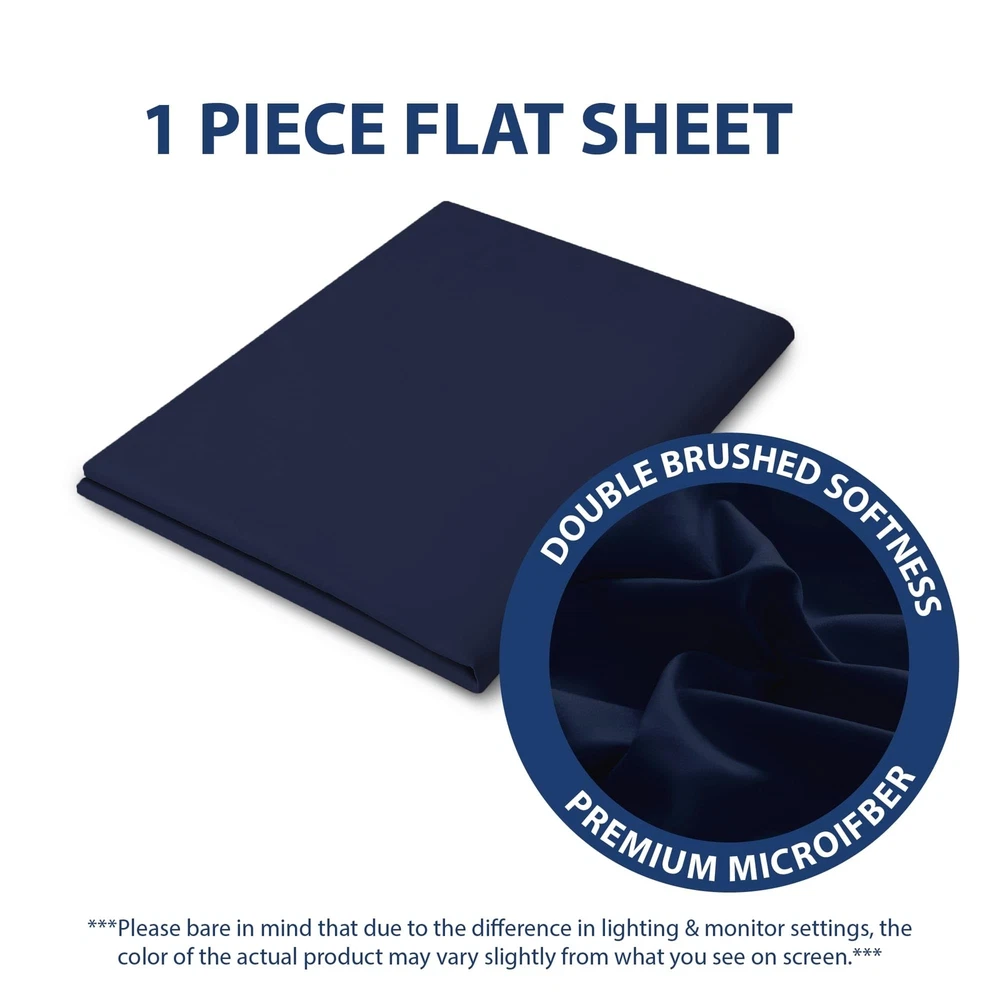 A good night's sleep starts with the right bedding, and sometimes, you find yourself in need of replacing only part of that bedding. Why pay for a whole new set when only piece is ripped, stained, or simply worn out ? With this great deal on a single flat sheet, you don't have to ! The super-soft and silky-smooth feel microfiber fabric is hypoallergenic, and its array of solid colors allows you to match the rest of your existing bedding or shake things up with a coordinating hue. WHAT’S INCLUDED - Full size: 1 Flat Sheet 81" x 96". IRRESISTIBLE BEDDING - This beautiful flat sheet will enhance the comfort of your bed and the style of your bedroom. Made of 100% double brushed microfiber, it is lightweight, durable, and buttery soft. *Microfiber is an umbrella term for ultra-fine synthetic fibers that are commonly made from polyester and polyamide. HOME ESSENTIALS - Available in a wide assortment of vivid color options ranging from neutral to bold, this flat sheet, suits any style. *Please bear in mind that due to the difference in lighting and monitor settings, the color of the actual product may vary slightly from what you see on screen. EASY CARE - They are also machine washable and quick drying for easy care. OEKO-TEX CERTIFIED - Tested and certified to be free from harmful chemicals, the sheets meet high safety standards.