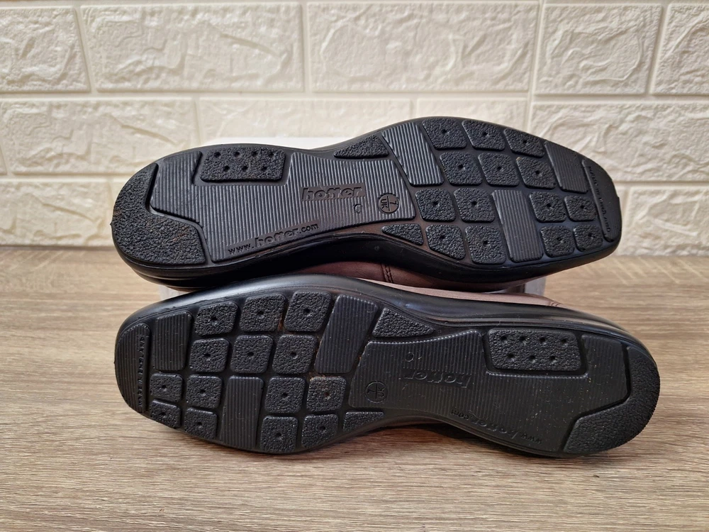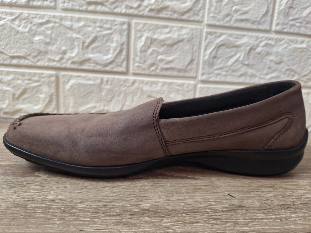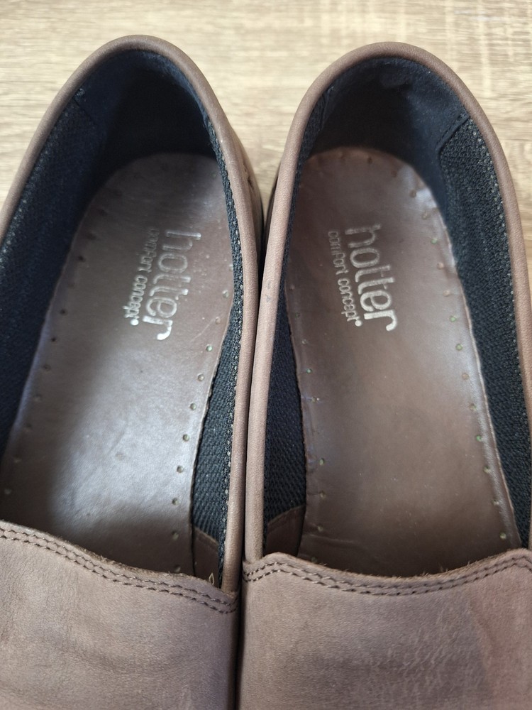 These Hotter "Retro" loafers are crafted from soft nubuck leather in a versatile brown shade. Designed for maximum comfort, they feature a classic slip-on style with attractive whipstitch detailing around the toe. Condition: Excellent pre-owned condition with very minor signs of wear. There are two very small marks on one shoe (hardly noticeable), which are highlighted in the final close-up photo. Measurements: Size: UK 7 / EU 41 / USA 9 Width: Standard (STD) Obv