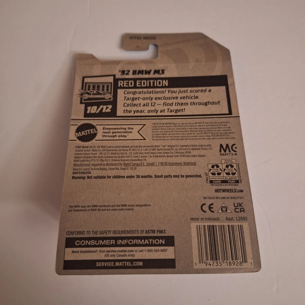 This Hot Wheels Target Exclusive Red Edition 92 BMW M3 is a must-have for any car enthusiast, young or old. With its vibrant red color and diecast material, this 1:64 scale model is a stunning addition to any collection. Featuring limited edition details and the iconic BMW logo, this car is perfect for boys and girls aged 3-4 years who love cars. The model is part of the Hot Wheels Red Edition series and is a faithful reproduction of the 1992 BMW M3. Add this beautiful model to your collection today!