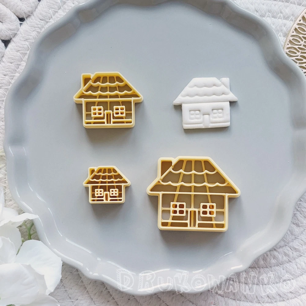 House Home Roof Family Small Hut 3 Polymer Clay Cutter For Earring Jewelry