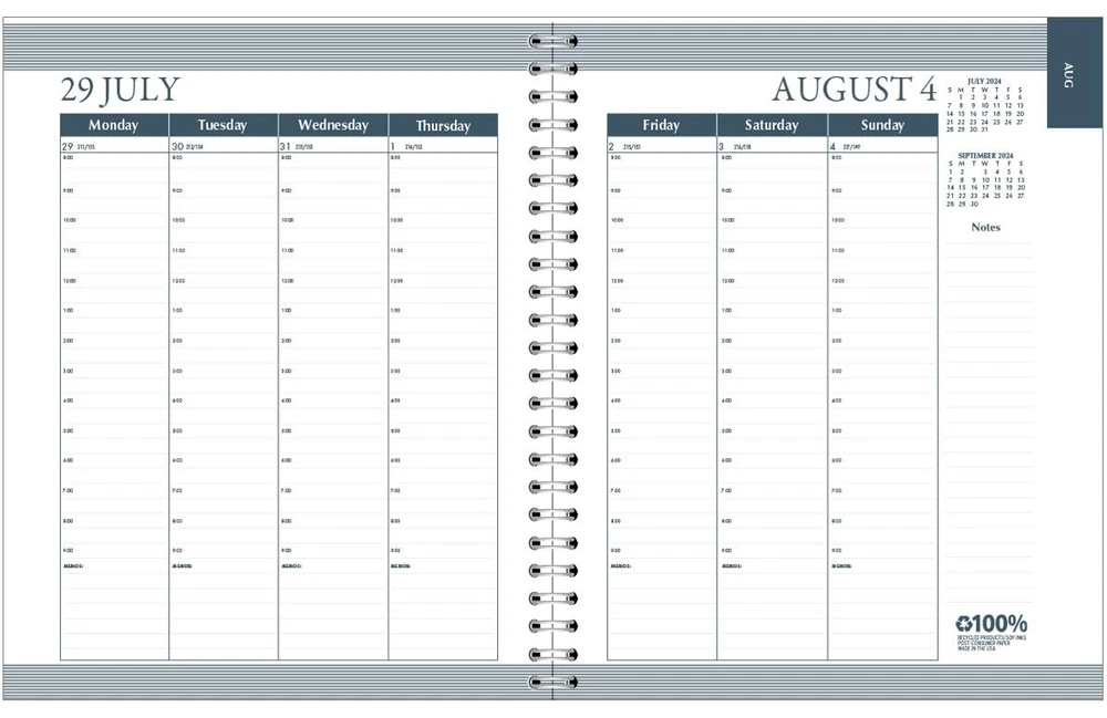 House of Doolittle 2024-2025 Weekly and Monthly Planner, Academic, Dots Hard Cover, 7 x 9 Inches, August - July (HOD29593-25) Since 1919, House of Doolittle has manufactured quality dated products made in the United States that help you be more productive during your daily planning activities. In 1989 we made the commitment to produce all of our products using recycled paper and materials. Part of our environmentally responsible collection is this Academic Weekly/Monthly Planner, 12 months, August 2024 to July 2025. It features a wire bound dot design hard cover that opens and folds over to create a sturdy writing surface. Schedule appointments 7 days a week with hourly appointments from 8:00 am to 9:00 pm. The die cut tabs help you to quickly find the date you need. This personal planner is geared for a teacher, student, mom, dad or any professional who is looking to keep their life and tasks organized. Other products from House of Doolittle include desk pads, wall calendars, lesson planners, class record books, assignment books, monthly appointment planners and weekly appointment planners. Go Green with House of Doolittle products, as we use 100% recycled paper containing 100% post-consumer waste with soy inks, 50% recycled cover material, and 90% recycled wire. All of our products are manufactured in the USA. Since 1989 House of Doolittle has donated 5% of its profits to organizations that are working to create a more sustainable environment. August 2024 - July 2025, featuring 12 months for easy planning Features tabbed monthly indicators to quickly find the date you need to document appointments in hourly sections from 8:00 am to 9:00 pm Weekly vertical format has one day per column for 7 days on a two page spread; Monthly format is on a two page spread with plenty of space for notes Planner is bound strongly with wire binding and the dot design two piece hard cover can fold under when opened to create a sturdy writing surface; Includes a double-sided storage pocket Printed on 100% post-consumer recycled paper with soy inks; Made in the USA Shipping from the USA All of our products are shipped from the USA, ensuring quick delivery to your destination. Payment We offer the following payment methods: PayPal, credit card, bank transfer, and eBay's secure payment system. Free Shipping & Free Returns Shipping within the USA is FREE. Additionally, any return is absolutely free for you. Risk-Free Purchase You have the option to return an item within 30 days without any justification. We cover the return shipping costs! Fast Shipping We ship immediately upon receipt of payment. Generally, the package is delivered within 2-3 days in the USA. If it takes longer, we will contact you. Quality and Costs Made in Europe, USA, China No customs fees or additional charges Total satisfaction guarantee Invoice with declared VAT available upon request in .pdf format Feedback Your feedback is very important to us. After you pay for your purchase, you will automatically receive positive feedback from us.