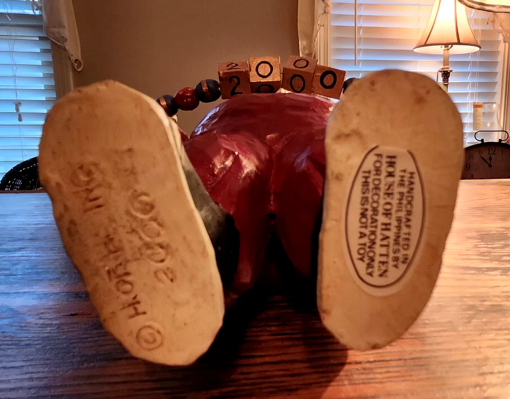 Time Period Manufactured:2000-2009Handmade:NoStyle:Folk ArtColor:RedYear:2000Featured Refinements:House Of Hatten SantaItem Height:9 inTheme:Seasonal, Y2K, Santa Claus, Millenium, ChristmasPattern:SolidPower Source:N/ACharacter:Santa ClausBattery Type:N/ADepartment:AdultsCollection:Heritage Arts StudioSubject:SantaMaterial:ResinSize:MediumNumber in Pack:1Original/Reproduction:OriginalType:FigurineCountry/Region of Manufacture:PhilippinesItem Length:6.5 inCharacter Family:Y2KBrand:House of HattenArtist:Kelley Stadelmangtin13:N/ASigned:NoUPC:N/AYear Manufactured:2000Era:21st Century (2000-Now)Occasion:ChristmasFinish:MatteShape:Figural