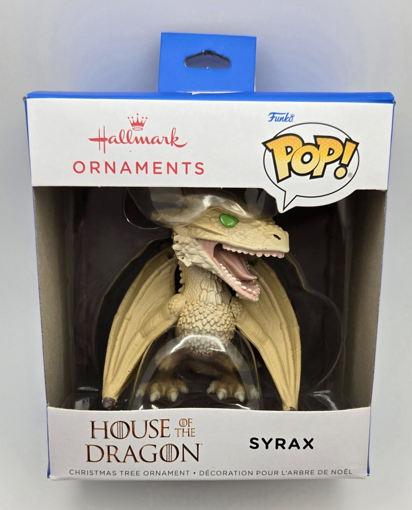 *Free shipping with USPS Ground Advantage. Ships ASAP. Packaged with care. Smoke-free home.* The Hallmark ornament features Syrax from Game of Thrones spin-off House Of The Dragon in a small, beige design. This 3-inch collectible ornament is part of the Funko POP! collection and is themed around film & TV. It is a 2024 release with hanging and boxed features, perfect for Christmas decorating.