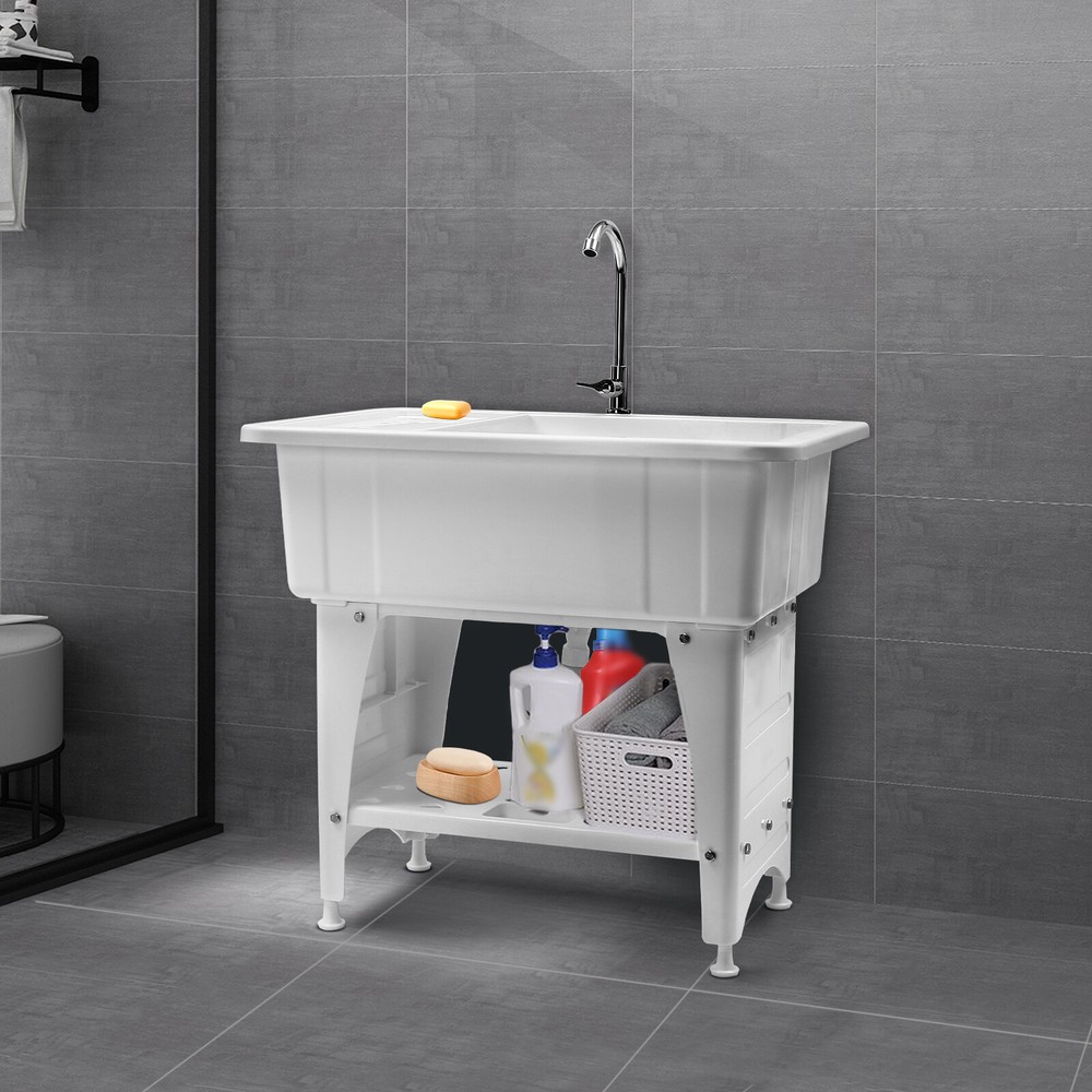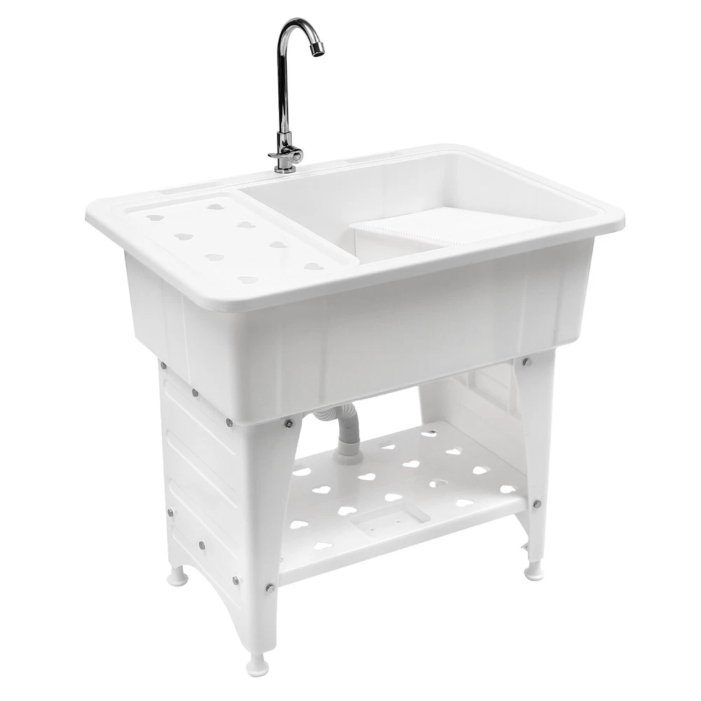 $ 17.39Freestanding Laundry Sink with Washboard Utility Sink with Cold and Hot Water
