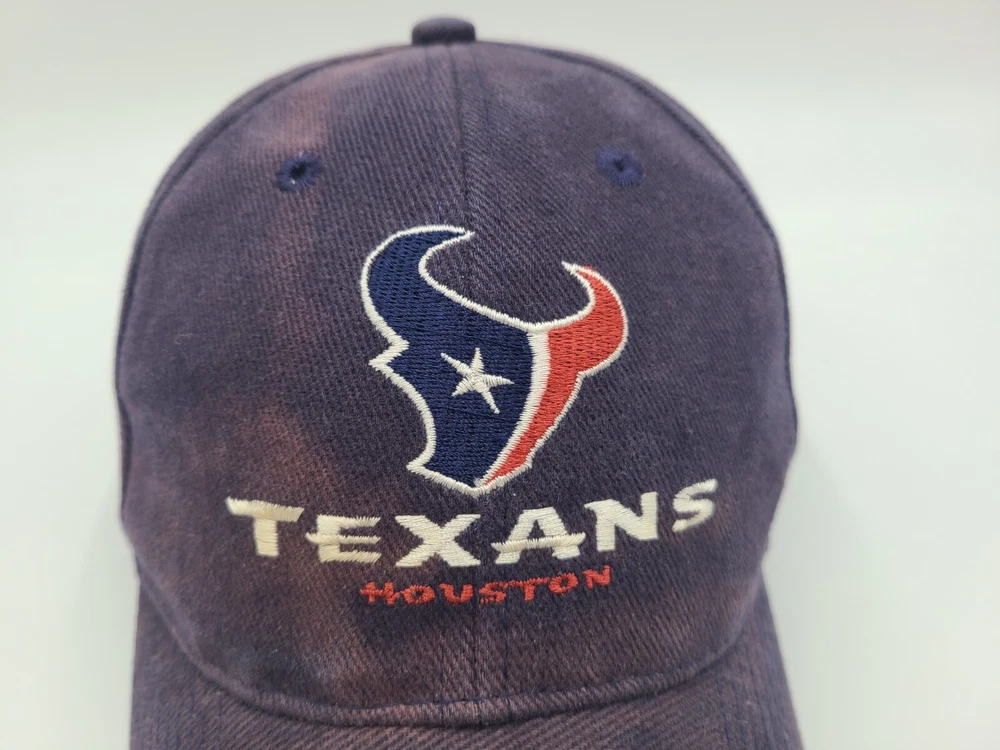 Has stains/discoloration all around the hat as seen in photos. Houston Texans Otto Distressed Strapback Adjustable Hat Cap Men Women NFL Blue. EACH ADDITIONAL HAT PURCHASED IS ONLY $1 ADDED SHIPPING!