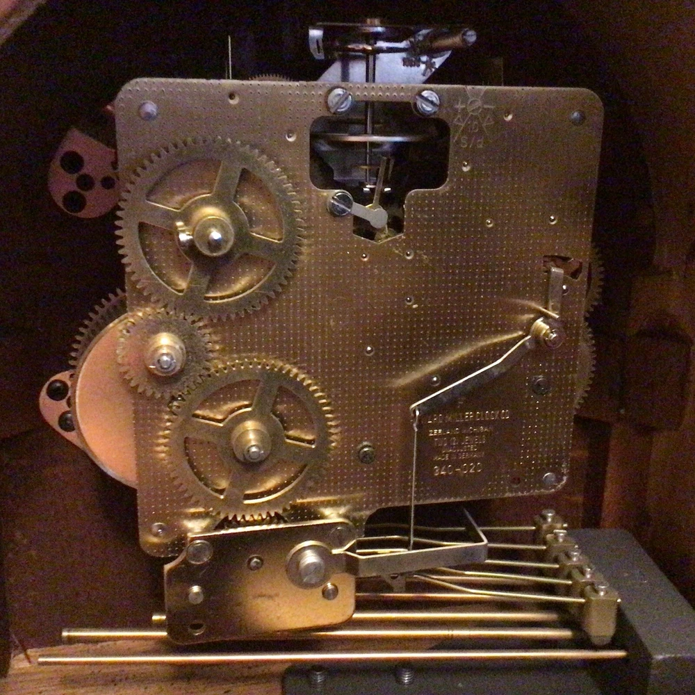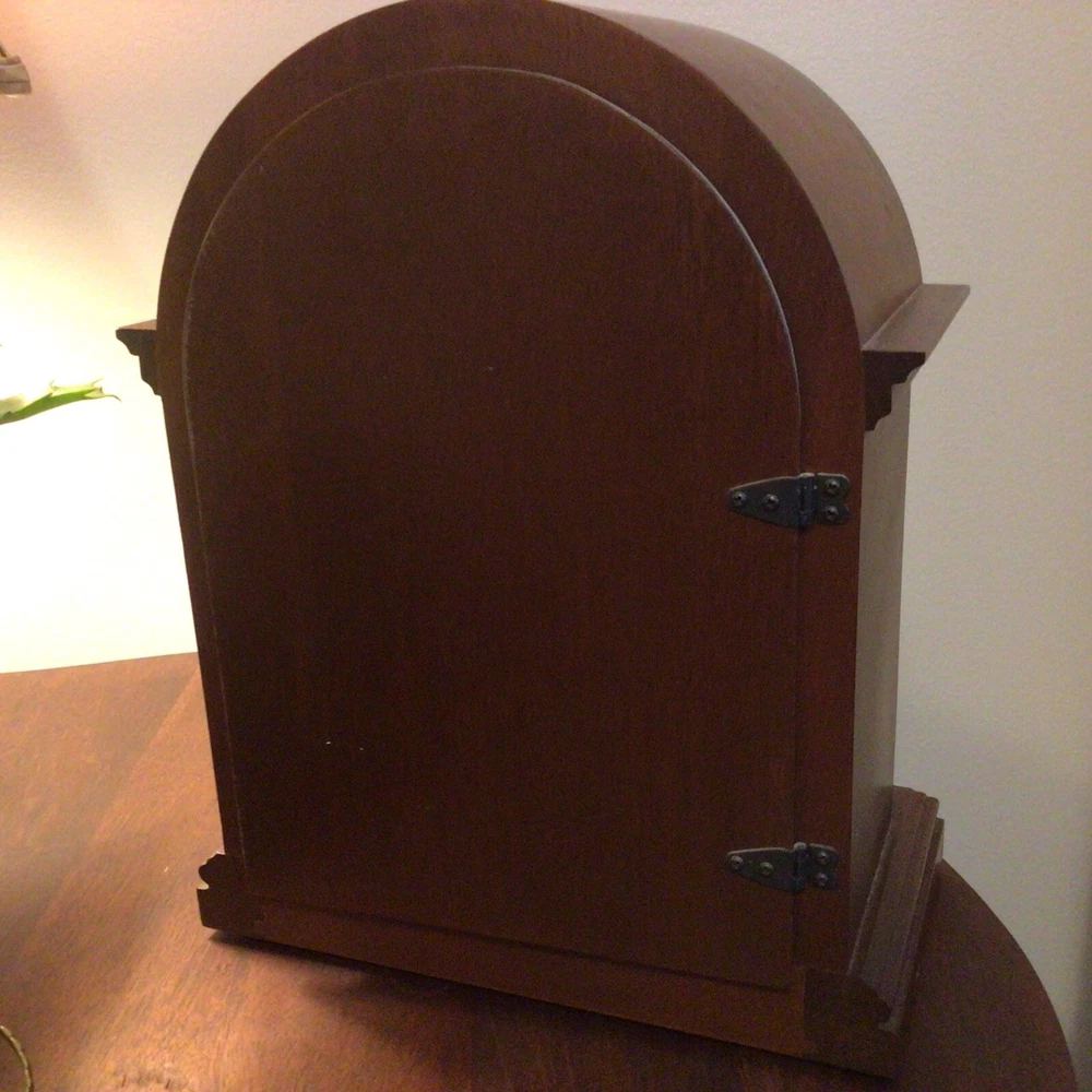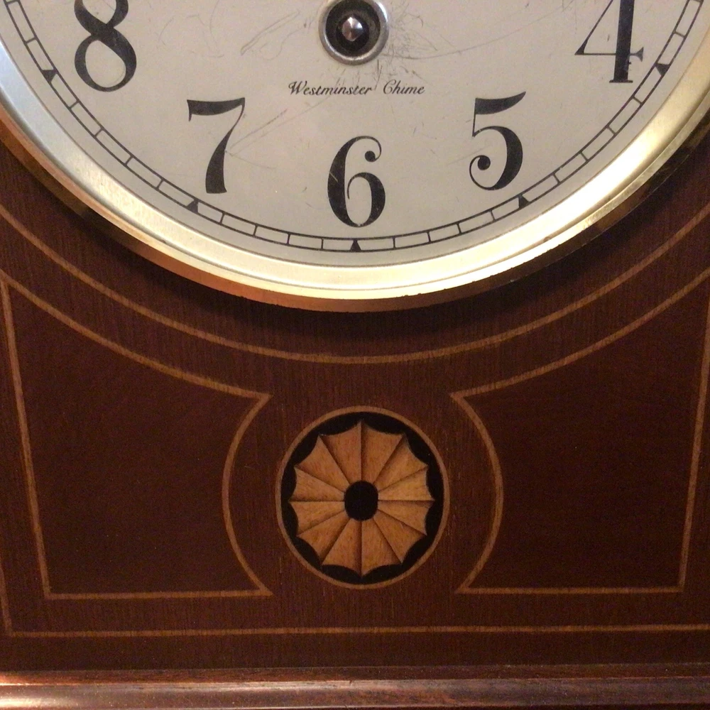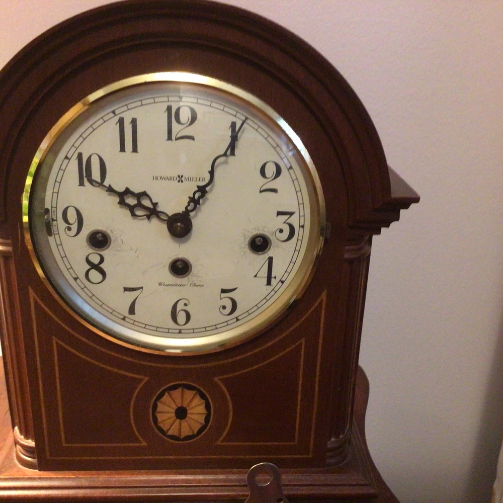 This beautiful Howard Miller Barrister Westminster Chime Mahogany Clock is a vintage piece that will add elegance to any room. The clock features a traditional style with a mahogany finish, brass accents, and glass panels. It is signed and comes with a key that allows it to keep perfect time. The clock's movement is mechanical and it has a Westminster chime sequence that plays on the hour. The display type is analog and it has two jewels. The clock is an original piece from Germany and was manufactured in the late 20th century. It will make a great addition to any collection or as a stand-alone piece.