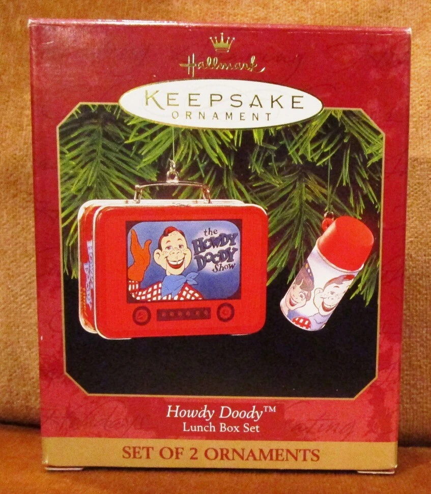Hallmark Keepsake Ornament Howdy Doody TV Show Lunch Box Set 2 Piece Ornament -1999 Vintage Collectible. The ornament arrives in it's original box in almost like new condition. Contains 1 - lunch box and 1 thermos The item in the pictures is what you will receive We are the original owners