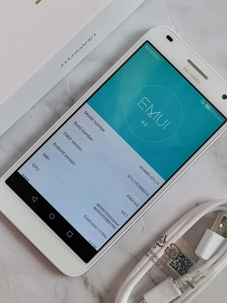 Huawei Ascen d G7 (G7-L01) Released 2014, October 165g, 7.6mm thickness Android 4.4.2, up to 6, EMUI 3 16GB storage, microSDHC N/A 4,301,629 HITS 192 BECOME A FAN 5.5" 720x1280 pixels 13MP 1080p 2GB RAM Snapdragon 410 3000mAh Package cont ain : 1* Huawei G7 Smartphone (unlocked ,good condition,about99%new) 1*charger 1*cable 1*Huawei universal box . you can choose . the package only phone and charger and USB cable (please note:accessories are brand new but not original . ) , or the phone sealed in box with all accessories (like a new one, it's a good choice as a gift or use it yourself.). we will ship color randomly,if you want choose cholor please contact us . Also known as Huawei G7-L01, G7-L03 NETWORK Technology GSM / HSPA / LTE LAUNCH Announced 2014, September. Released 2014, October Status Discontinued BODY Dimensions 153.5 x 77.3 x 7.6 mm (6.04 x 3.04 x 0.30 in) Weight 165 g (5.82 oz) SIM Micro-SIM DISPLAY Type IPS LCD Size 5.5 inches, 83.4 cm 2 (~70.3% screen-to-body ratio) Resolution 720 x 1280 pixels, 16:9 ratio (~267 ppi density) PLATFORM OS Android 4.4.2 (KitKat), upgradable to 6 (Marshmallow), EMUI 3 Chipset Qualcomm MSM8916 Snapdragon 410 (28 nm) CPU Quad-core 1.2 GHz Cortex-A53 GPU Adreno 306 MEMORY Card slot microSDHC (dedicated slot) Internal 16GB 2GB RAM eMMC 4.5 MAIN CAMERA Single 13 MP, f/2.0, AF Features LED flash, panorama, HDR Video 1080p@30fps SELFIE CAMERA Single 5 MP Video