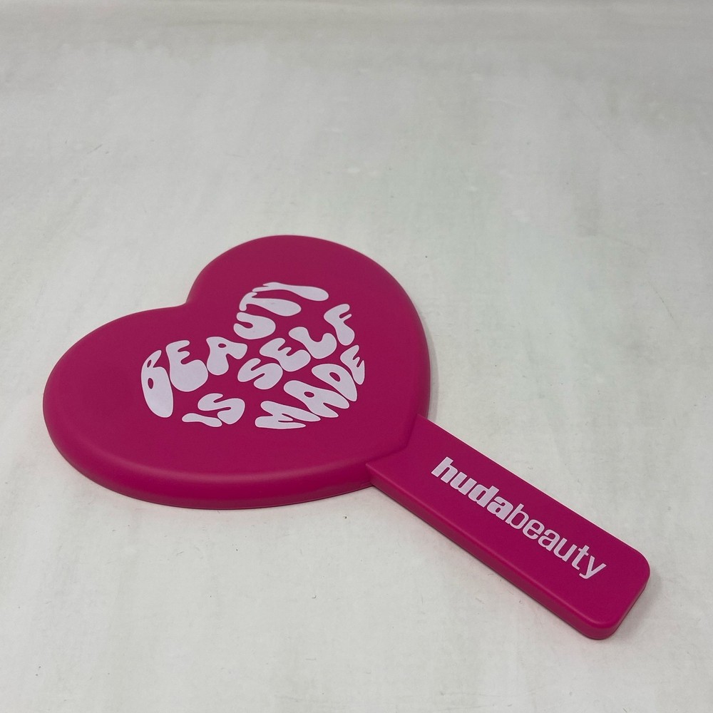 Type: Mirror Era: 21st Century (2000-Now) Mounting: Freestanding Theme: Hearts Frame Color: Pink Personalize: No Color: Pink Country of Origin: China Shape: Heart Brand: Huda Beauty