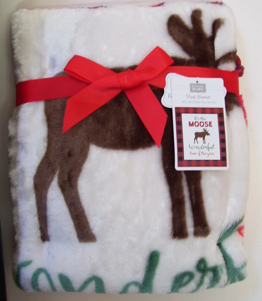 Hudson Baby It's The Moose Wonderful Time of The Year Christmas Baby Blanket
