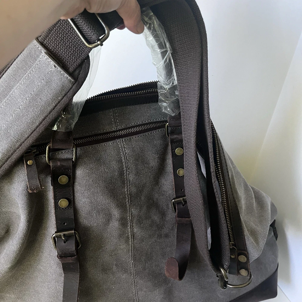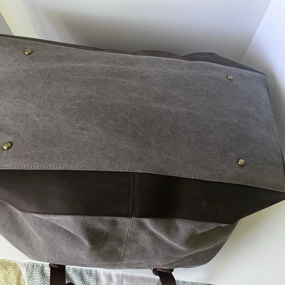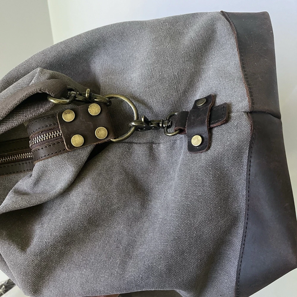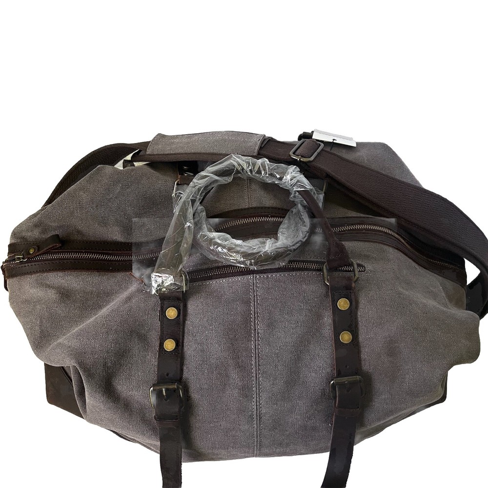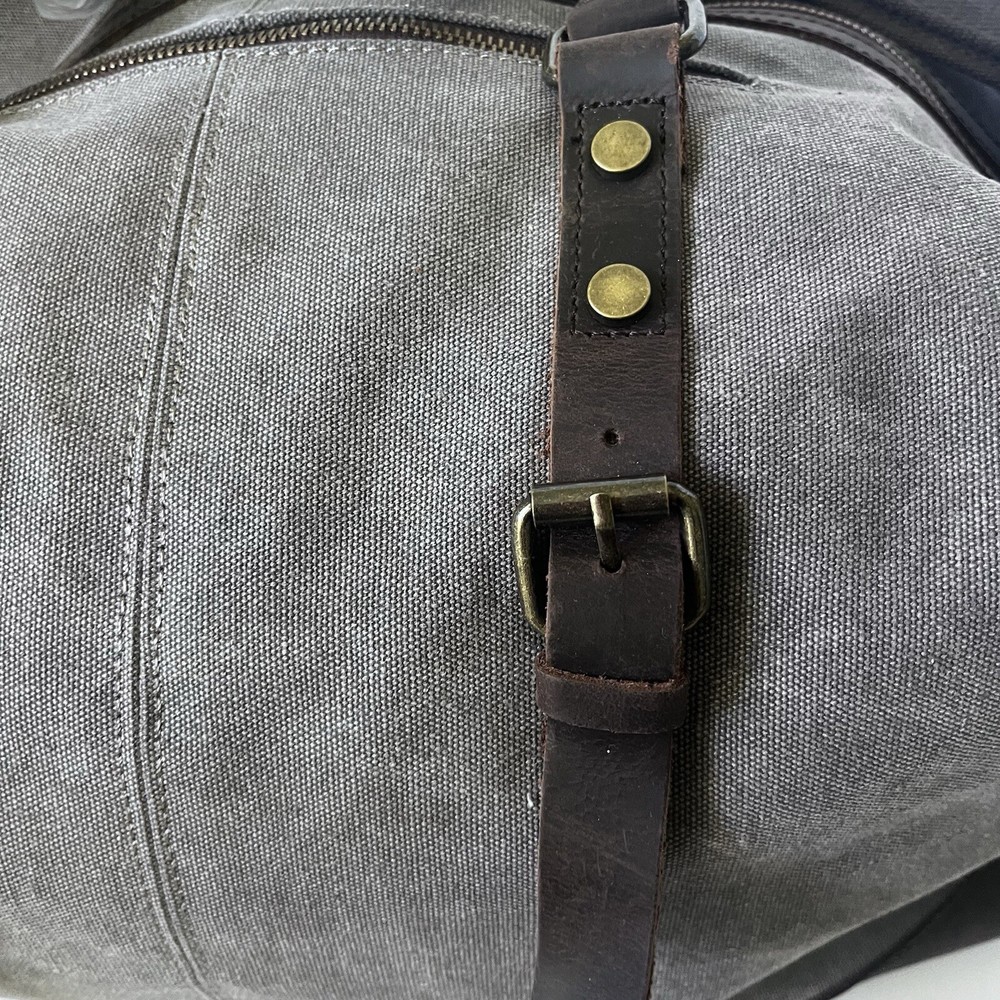 Color: Gray Theme: Sports, Duffel Bag, Travel, Gym Department: Men Customized: Embroidered Closure: Buckle, Zip gtin13: Does not apply Size: Large Fabric Type: Canvas Material: Canvas, Leather Pattern: Solid Handmade: No Bag Depth: 9” Vintage: No Brand: Hudson Cole Features: Adjustable Strap, Bottom Studs, Inner Pockets, Outer Pockets Character: Duffel Bag Handle/Strap Material: Leather Bag Height: 14” Style: Duffle Bag Width: 21” Personalize: No UPC: Does not apply Lining Material: Canvas Product Line: Hudson Cole Occasion: Casual, Travel