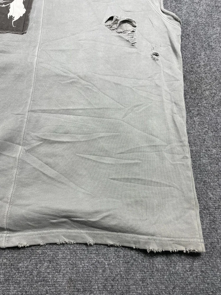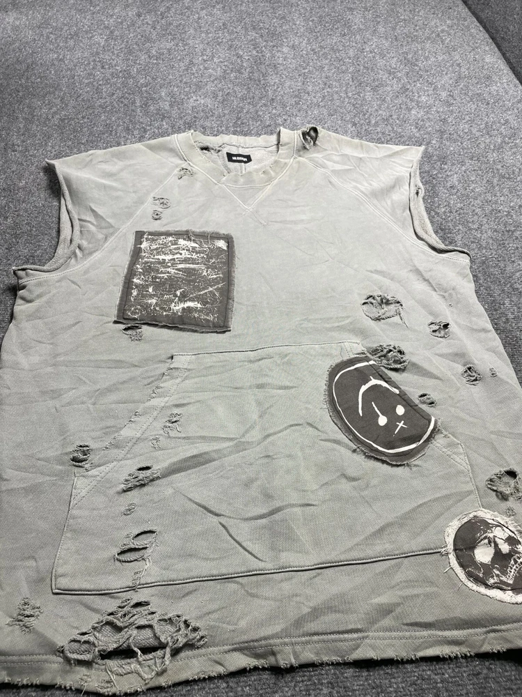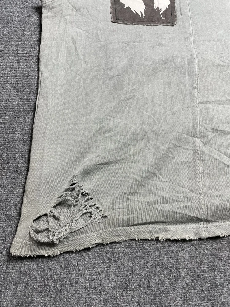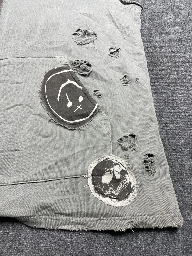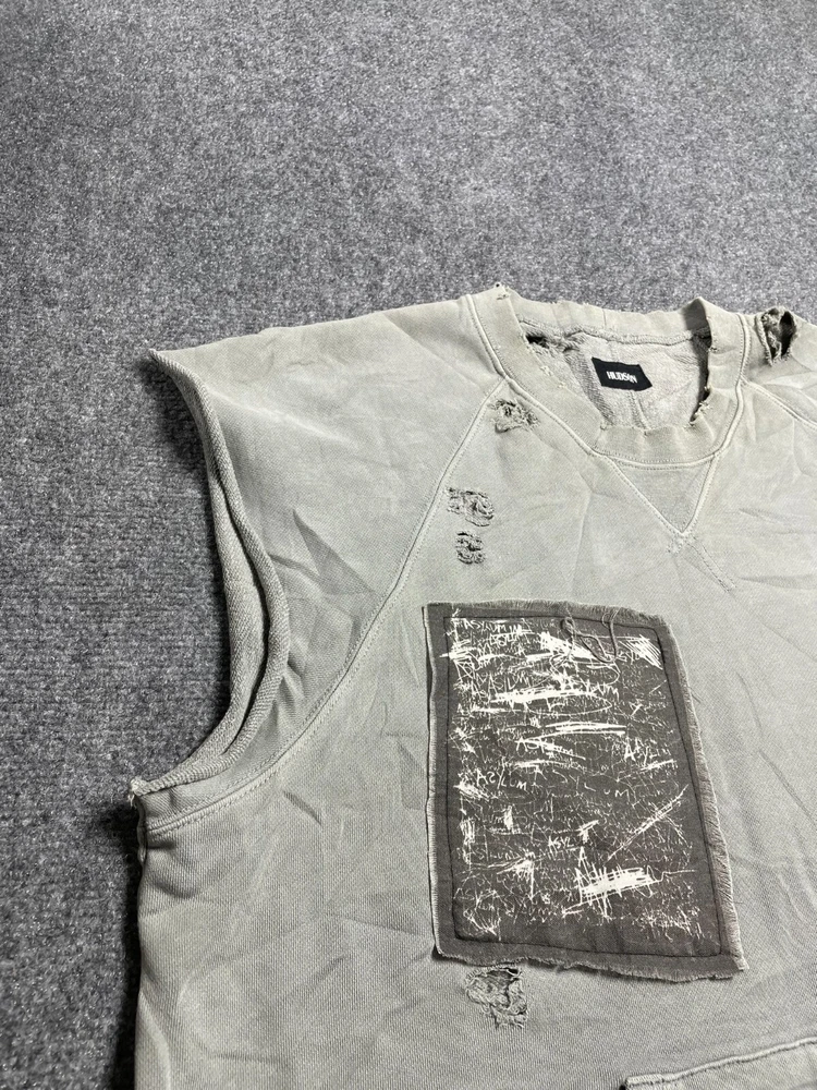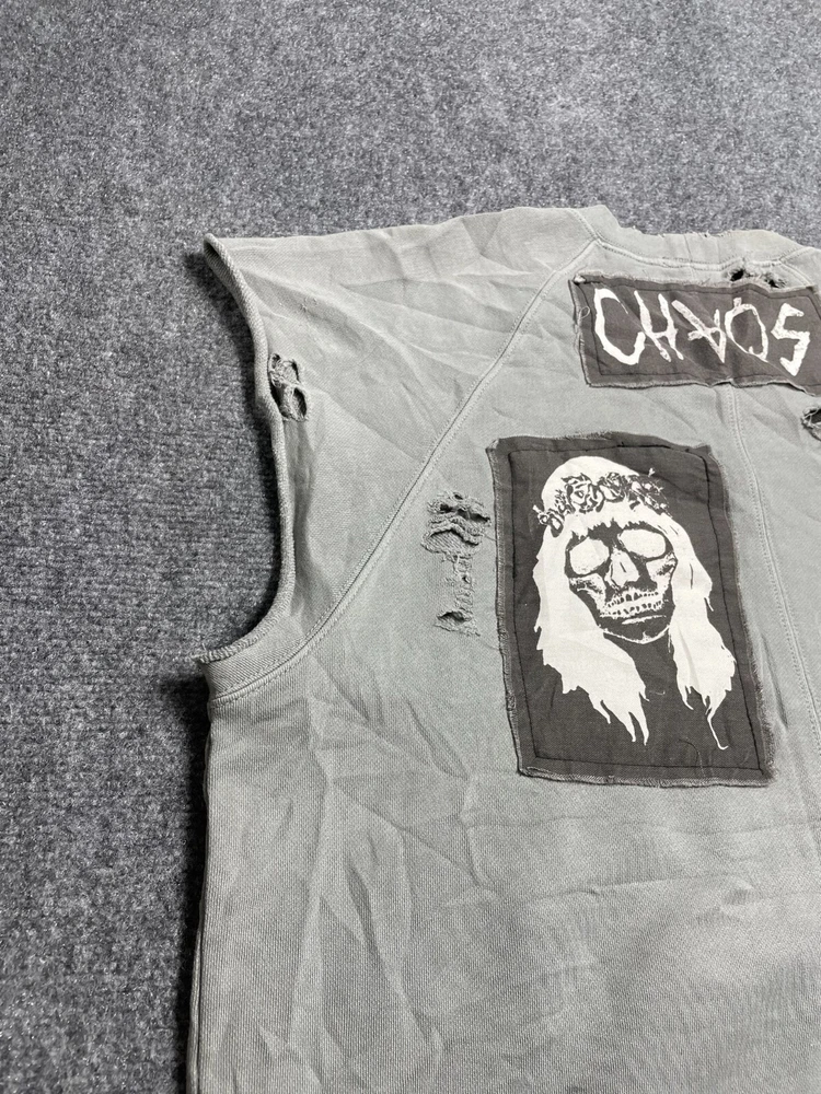 This Hudson Rex Cut-Off Chaos Unisex Shirt in Gray is a must-have for any fashion-forward individual. Made from 100% Cotton Jersey fabric, this short-sleeved sweater boasts a solid pattern and tight-knit construction. The crew neck and collarless design, along with the pockets and patches, make it perfect for travel, parties, or casual wear. The shirt is machine washable and comes in size XL with a regular fit. Its 80s and 90s theme adds a touch of nostalgia to your outfit. Whether you're going outdoors or just hanging out, this Hudson Rex sweater is the perfect addition to your wardrobe.