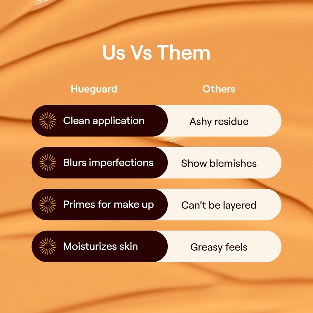 Hueguard 3- in-1 Mineral Sunscreen, Moisturizer, and Primer is the perfect solution for comprehensive sun protection with added skincare benefits. Our advanced formula provides broad-spectrum SPF 30 protection, guarding your skin against harmful UVA and UVB rays. Experience the convenience of a 3-in-1 formula that combines sunscreen, moisturizer, and primer all in one. Our everyday sunscreen is formulated with natural mineral ingredients such as zinc oxide, which provides gentle yet effective protection without irritating sensitive skin. Whether you're going to the beach, taking a hike, or just running errands around town, our formula ensures long-lasting protection, even during water activities. Additionally, our non-greasy and lightweight texture absorbs quickly, leaving your skin feeling comfortable and looking radiant all day long. 3-in-1 FORMULA: Enjoy the convenience of sunscreen, moisturizer, and a primer with ’s all-in-one solution. Protect your skin from harsh UVA/UBA rays while hydrating and blurring imperfections. NO WHITE CAST: You deserve sun protection that doesn't leave you looking like - well, a ghost. Say goodbye to the dreaded post-SPF look, and say hello to glowing skin for every shade under the sun with our mineral-based sunscreen. CLEAN & REEF FRIENDLY: Our reef-safe mineral sunscreen is vegan, cruelty-free and fragrance-free. Wear Hueguard alone or under makeup to protect your skin all year round. LIGHTWEIGHT & NON-GREASY: Hueguard is a zinc oxide sunscreen that absorbs quickly into the skin without leaving behind a greasy residue, allowing for comfortable wear throughout the day. HOW TO USE: Apply a nickel-sized amount directly to face & neck for everyday protection. Apply as needed on the rest of your body, and re-apply throughout the day or after being in direct sunlight. Hueguard can be worn alone or under makeup