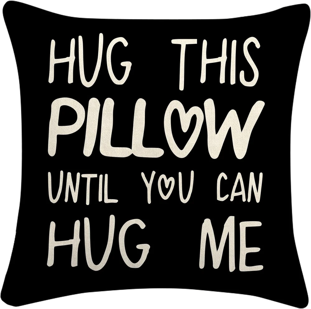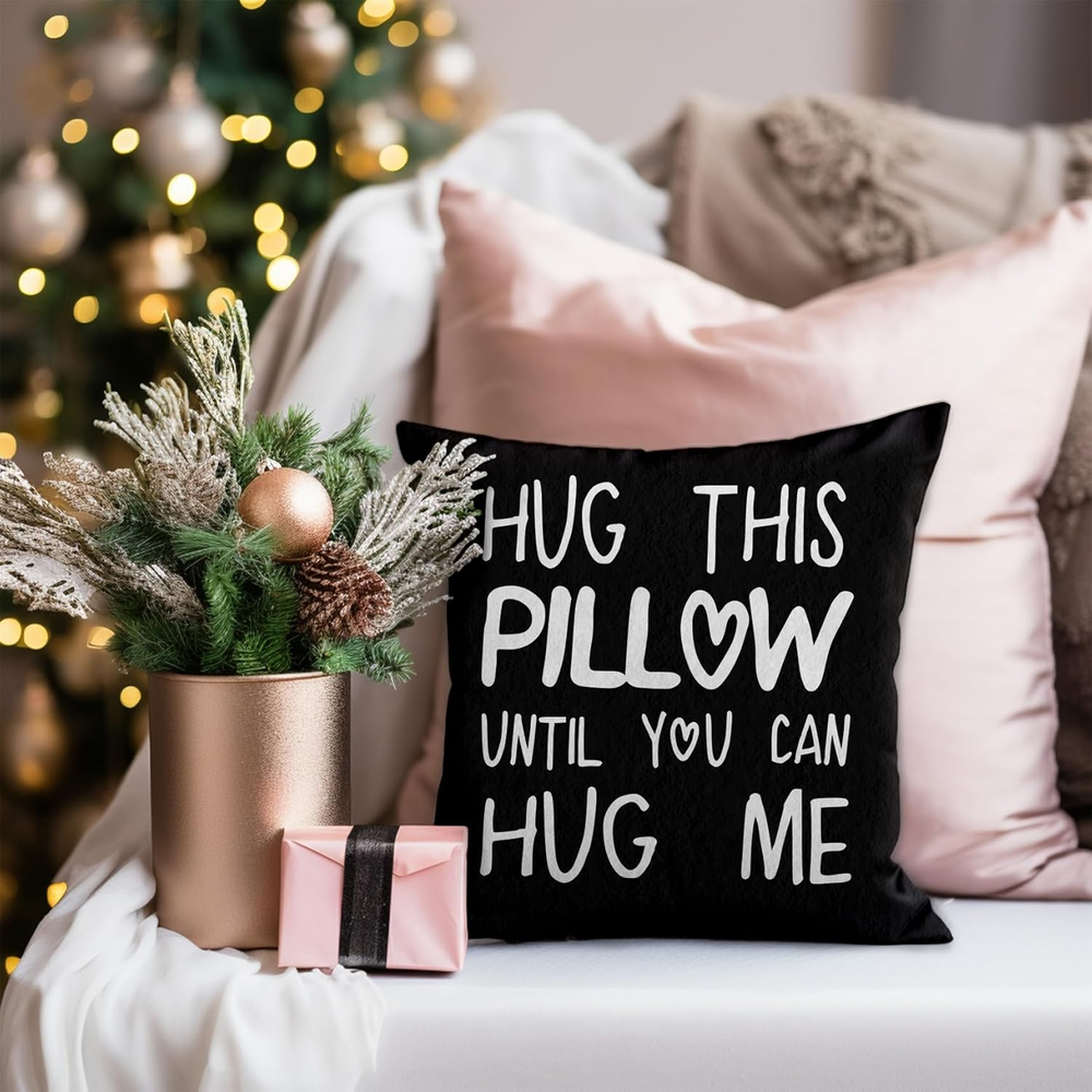 Store New Arrivals Add to Favorite View Feedback Contact Fast deliveries to the customer's home Quality customer service John Make the customers happy! Hug This Pillow until You Can Hug Me Throw Pillow Covers, 18 X 18 Pillow Case, for Boyfriend Girlfriend Birthday Gifts, Long Distance Relationships Gifts (Black)(18X18In) Description 100% Flannel The "Hug This Pillow Until You Can Hug Me Throw Pillow Covers" are heartwarming 18x18 inch pillow covers designed for couples in long-distance relationships. This black pillow covers feature a sweet and missing message, making decorative pillow cover a meaningful and thoughtful gift for boyfriend/girlfriend/best friends and loved ones separated by distance. The anniversary gifts for girlfriend pillow cover has neutral color and modern font make funny pillow covers 18x18 versatile, blending seamlessly with a variety of home decor styles. The black covers are designed with a hidden zipper to keep the pillows neatly tucked away while showcasing the endearing message prominently. Whether as a birthday gifts for men, boyfriend, partner, friend, or family member, our pillow cover offer a comforting reminder of love and connection across any distance. Product Description Item model number 001DMS-pillowcase-1 Style Unique Number of Items 1 Pattern Letter Print Country of Origin China Theme Holiday Number of Pieces 1 Unit Count 1 Count Room Type Bedroom Batteries required No Product Dimensions 18"L x 18"W Material Cotton Shape Square Volume 1 Milliliters Closure Type Zipper Item Weight 2.82 ounces Occasion Anniversary Special Feature Durable Color Black Pillow Type Throw Pillow Recommended Uses For Product Home Fabric Type 100% Flannel Product Care Instructions Hand Wash Only Size 18" x 18" (Pack of 1) ABOUT US We offer the best prices around on high quality products. Our E-store includes media such as books, movies, music and games while offering electronics, toys, sporting apparel, clothing, tools, general home, garden items and more. SHIPPING We are always working hard to ensure your package arrives as soon as possible. Please understand that some factors like weather, high postal traffic, and the performance of shipping companies are outside of our control. We offer free shipping to the lower 48 states and ship within 2 business days of payment, usually sooner. We do not accept P.O. Boxes. Please provide a physical address. For shipping outside of the continental USA, we only use eBay's Global Shipping Program. The item is shipped to KY and then sent to the rest of the world. International customers are responsible for all duties and taxes. Continue to 'check out' to calculate costs for shipping the item to your country. Messages regarding eBay's Global Shipping Program MUST be directed at eBay EXCLUSIVELY. RETURNS We offer a 30-Day Return Policy on items in which you are not completely satisfied with. You have the option of a full-refund or an exchange of the item. No returns are available on items shipped outside of the USA PAYMENT We accept PayPal. CONTACT US This page content is yet to come Please ad us to your favorite seller and visit again later Thank You CUSTOMER SATISFACTION We try our very best to make sure every customer is completely satisfied. If there's a problem, message us! We're happy to help. WE ACCEPT