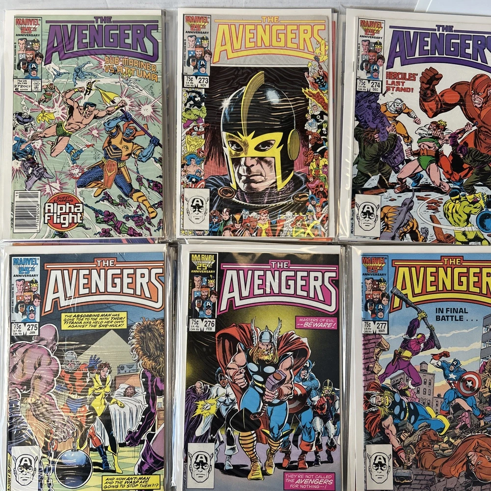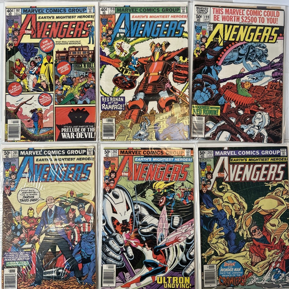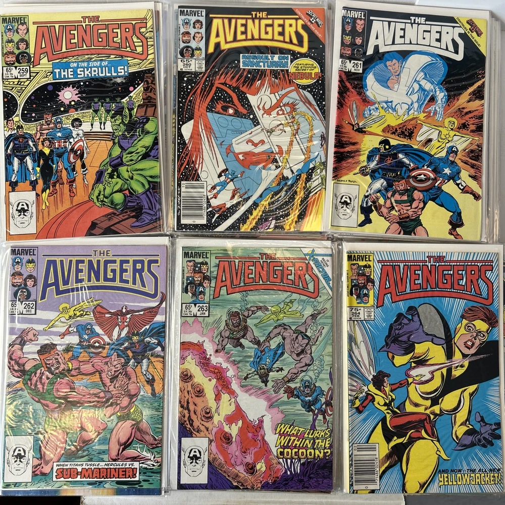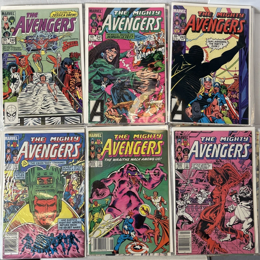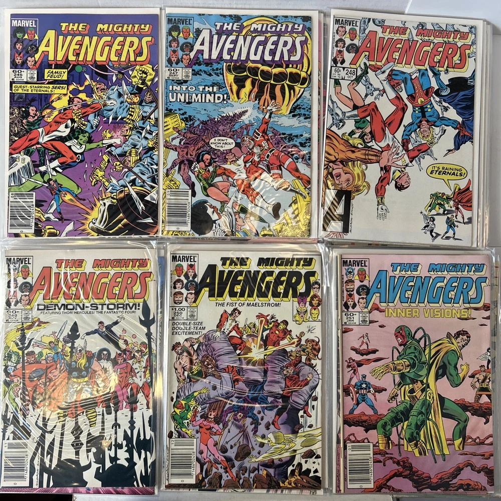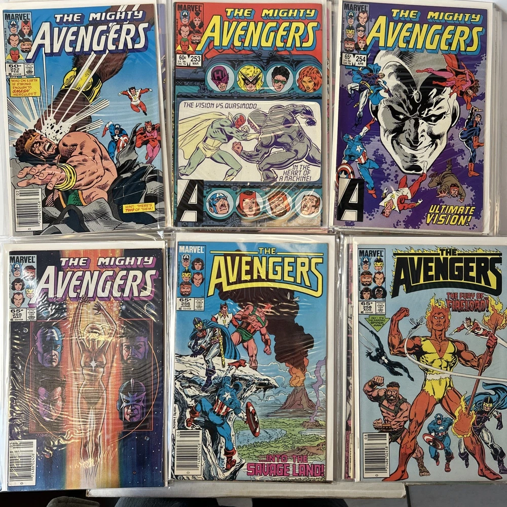Complete Run of Avengers From #197-300 Including the Keys Mostly FN/VF-NM A few are closer to FN Bagged and mostly boarded The product is a complete run of Avengers comic books from issue #197 to #300, published by Marvel Comics in 1989. This collection includes key issues featuring the Avengers superhero team, making it a valuable addition to any Marvel comic book collection. With a mix of FN/VF-NM condition, these comics offer fans of the Avengers series a chance to own a substantial portion of their favorite superhero team's adventures.