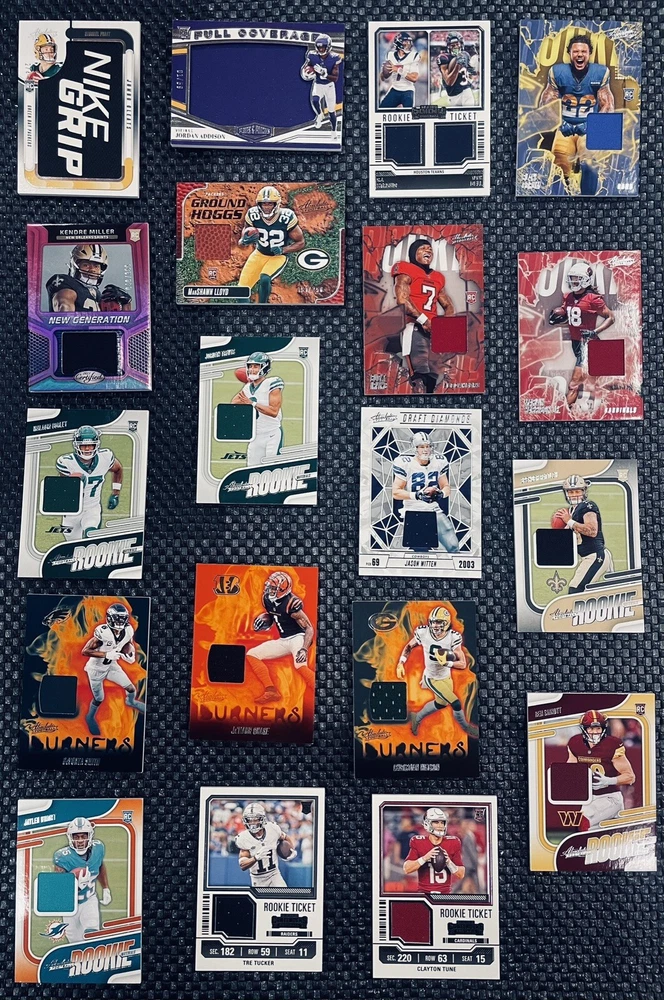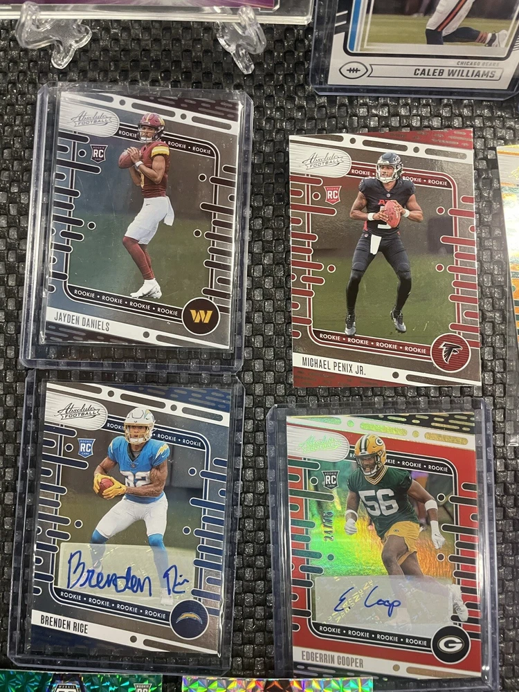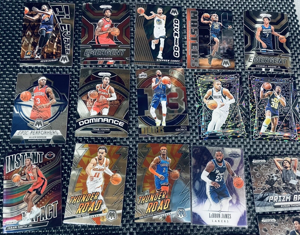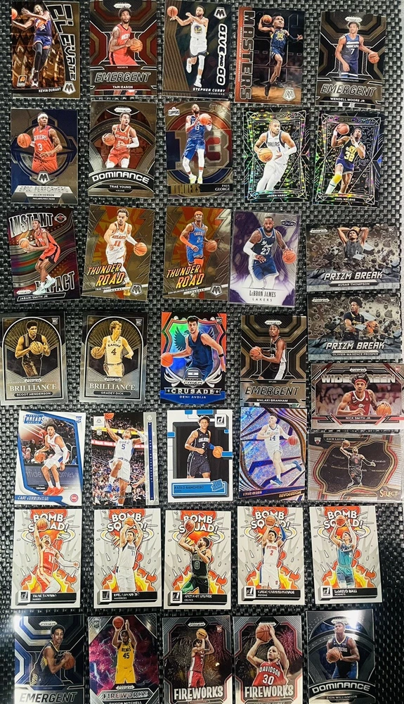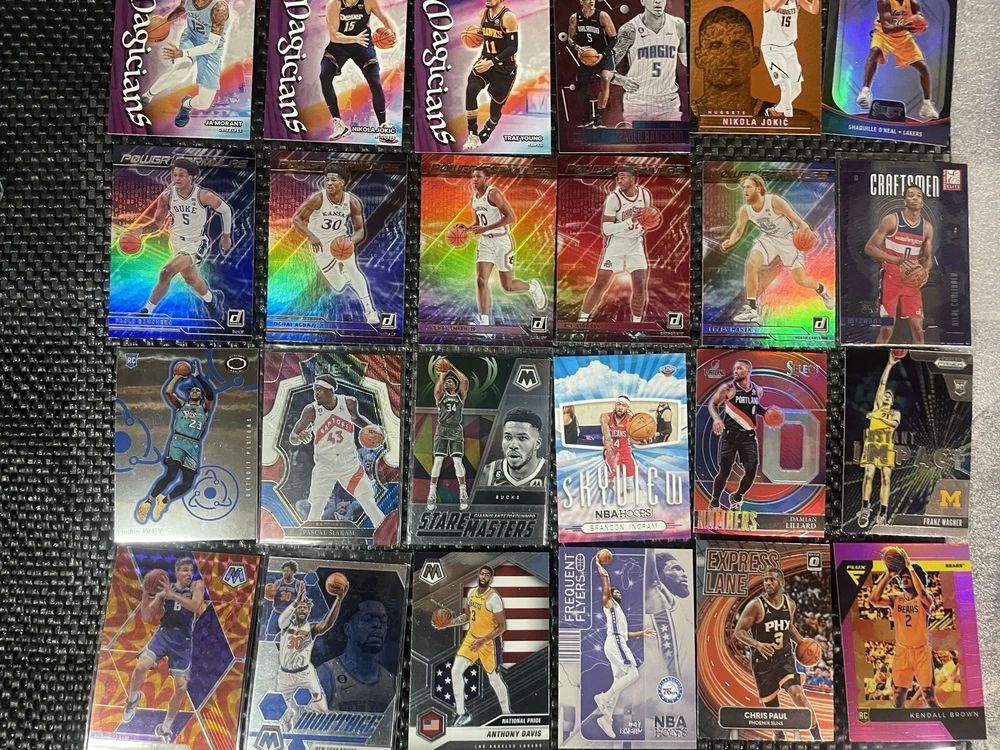 Update coming (February 22nd) Lot will be updated and available for auction soon many cards in this lot not shown yet but still included if purchased before the auction . Message me if more information and stalls needed . Great discounted bundle for any collectors inventory . And a big variety of Top rookies and veterans from all different eras and several bonus old school players, like Michael Jordan, Grant Hill, Allen Iverson and several more. 💥💥💥Priced to sell quickly for a limited time as this lot will be listed as an auction later in the week. Message me if interested and if more information or pictures are needed . An Absolute bundle with a variety of specialty cards. . Rare case hits and other nice items included. Many hidden gems in this lot See photos for item specifics and details older bonus cards may show their age so message me if more specific pictures are needed . All cards included.. 💥💥💥 More nice hits added, Autos, patches, numbered hits Rookies, and much more . Additional cards are always added as I go through my inventory but price stays the same . You’ll be pleasantly surprised with the bonus add ons . Thanks 💥💥 Jayden Daniels (Mint) Star Gazing insert and base rookie added .💥