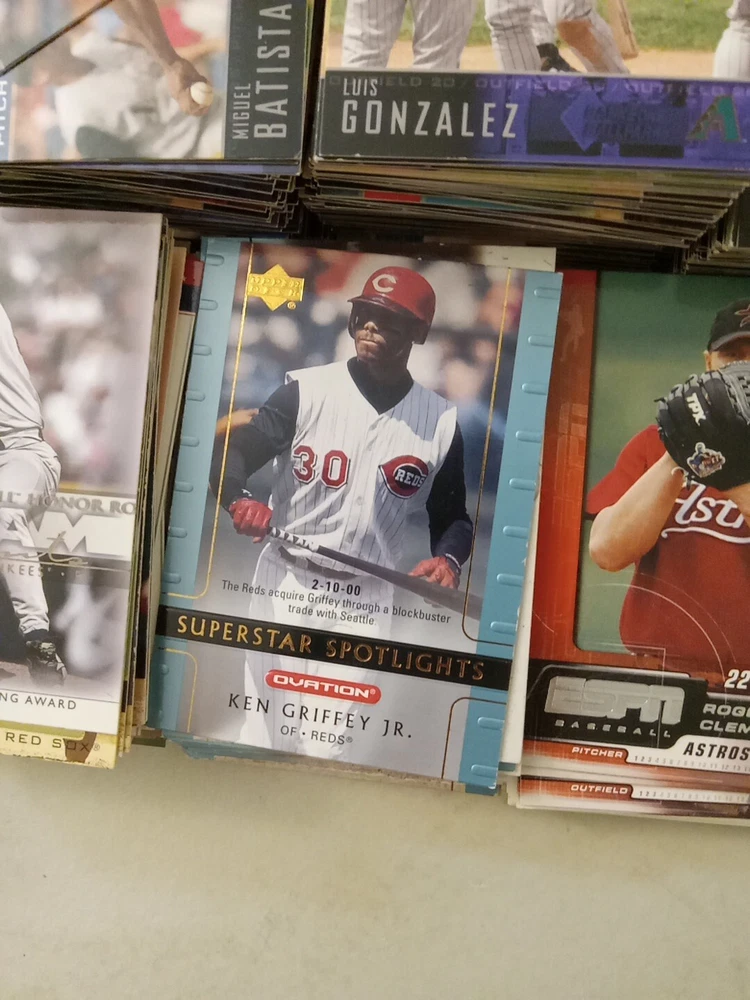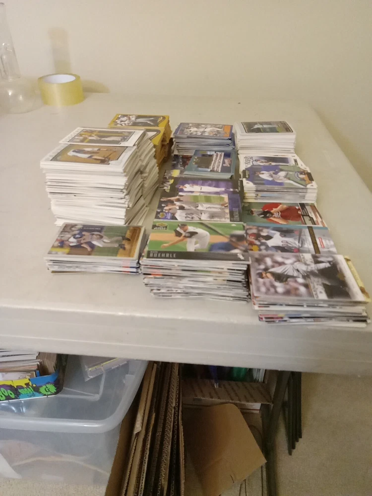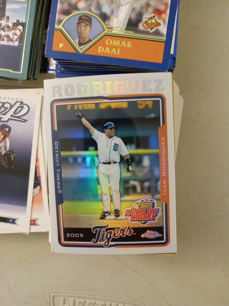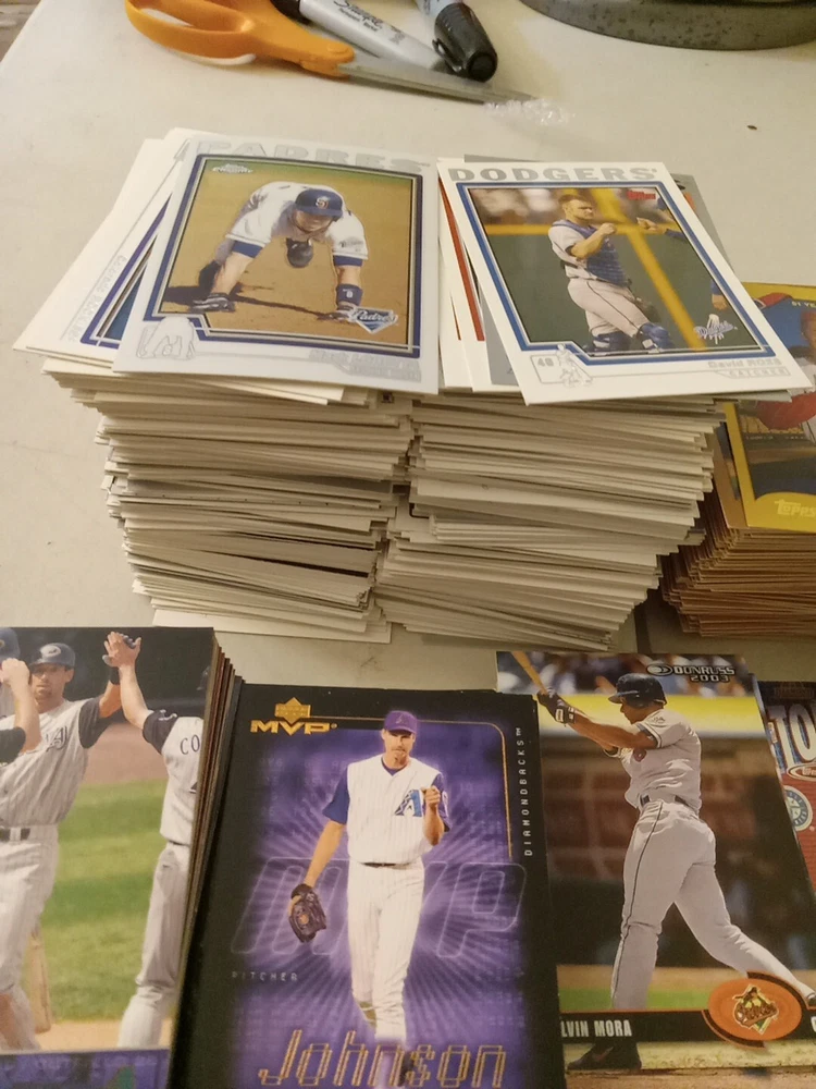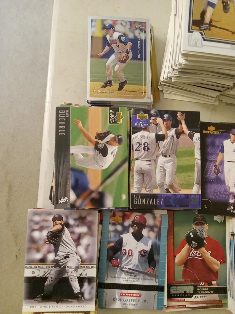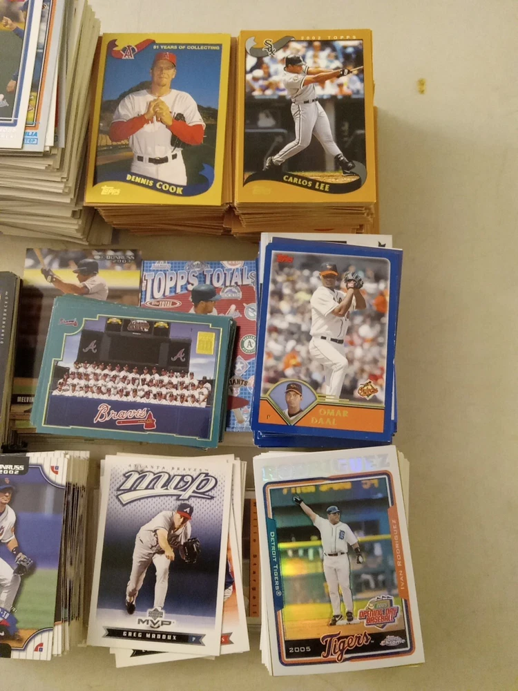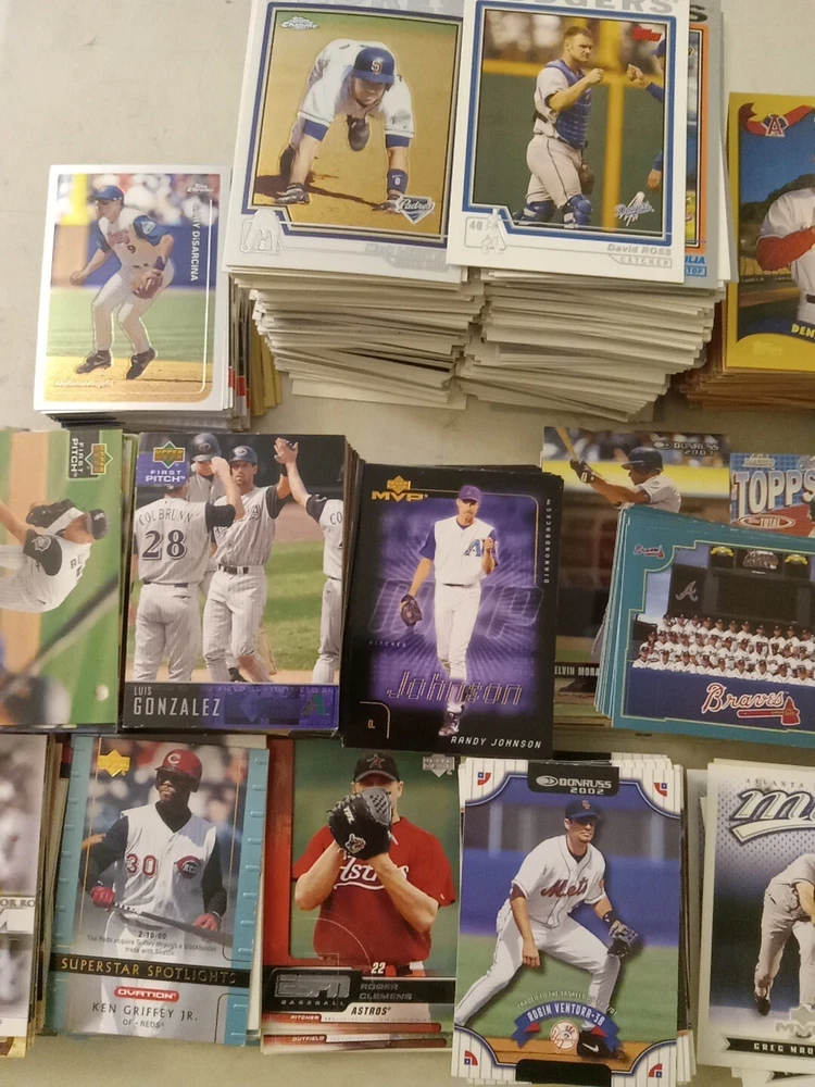 Huge Lot of atleast 1400 cards. Most are from roughly 2000 to 2005. Most of them are topps but there are some upper deck, donruss, etc. There are some topps chrome refractor cards and other limited edition and numbered cards. Some of the special edition cards are shown in photos. Most Cards are in near mint or very good condition. There are a small number in poor condition. There are some duplicate cards. Ships with usps ground advantage within two business days. Feel free to contact me with any questions or offers.