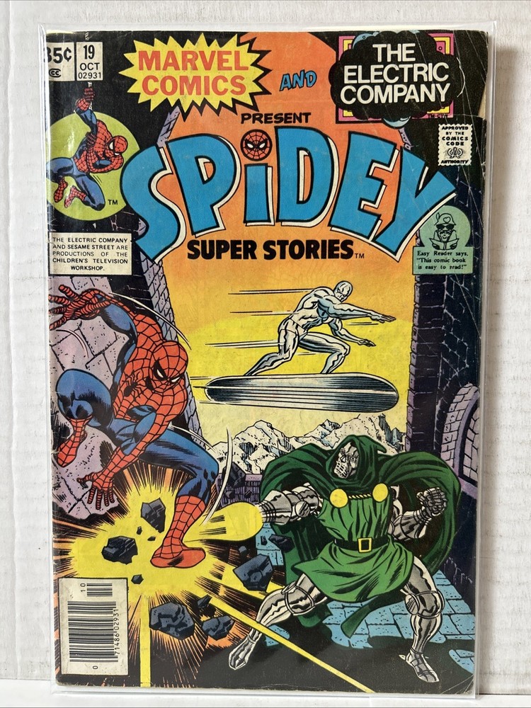 Nice Lot Off Spidey. Newsstand Variants 6, (FR), 19, (GD), 20, 25, 26, 27, 28, 33, 37, 40, 41, 42, 43, 44, 45, 46, 47, 48, 49, 50, 56 Early Issues mostly VG-FN Later Issues FN-VF Bagged and boarded product is a collection of 21 Spidey Super Stories comics from the Bronze Age era, specifically ranging between issues #6 and #56. These comics, published by Marvel Comics, cater to all ages and feature the iconic character Spider-Man. This lot of comics offers a nostalgic look into the US Comics tradition and is perfect for comic book enthusiasts looking to expand their collection with classic Spider-Man stories from the 1970s and 1980s.