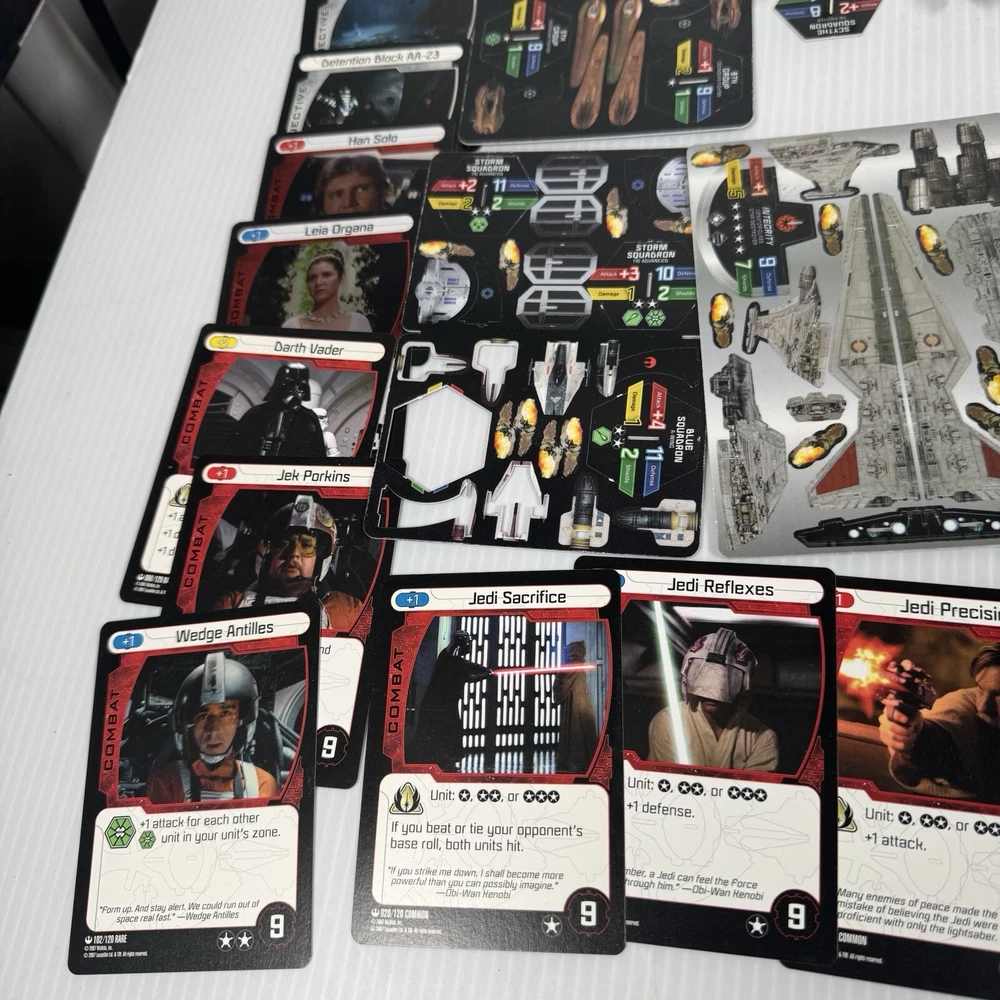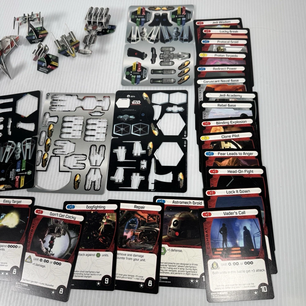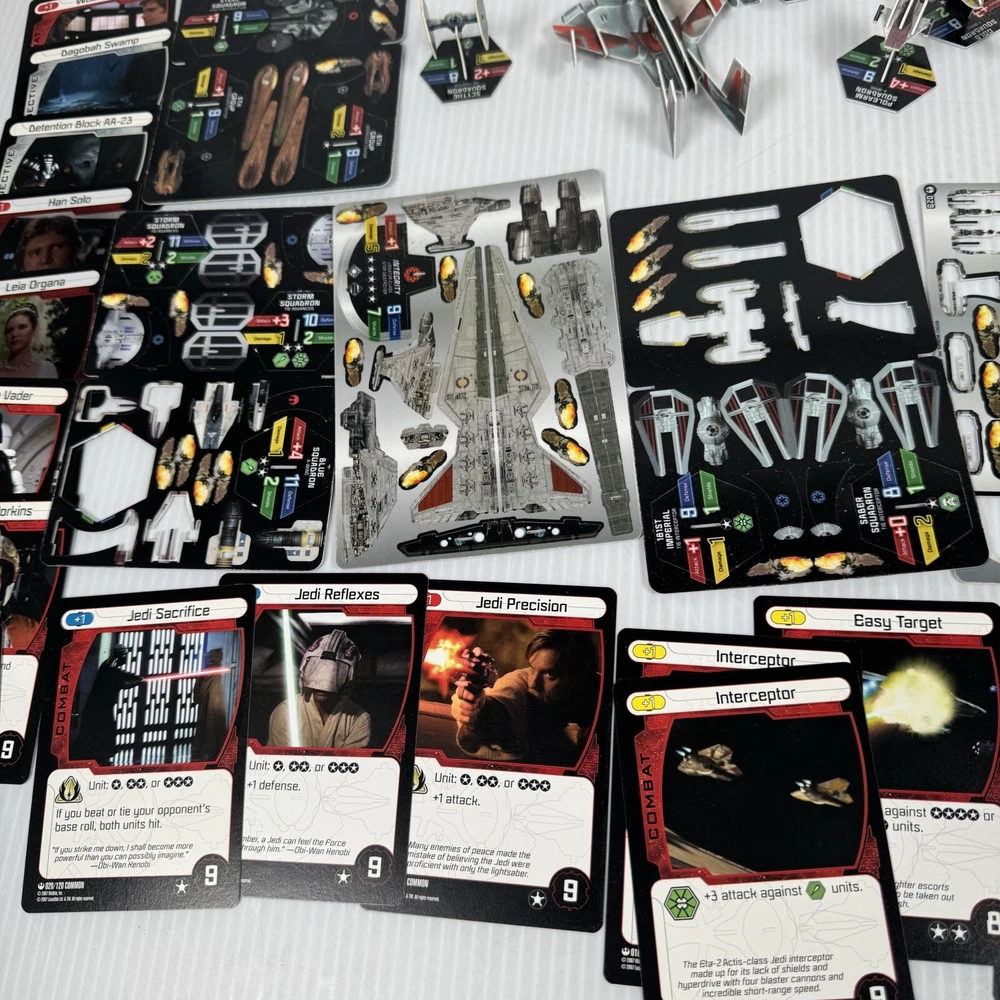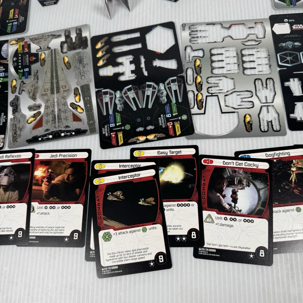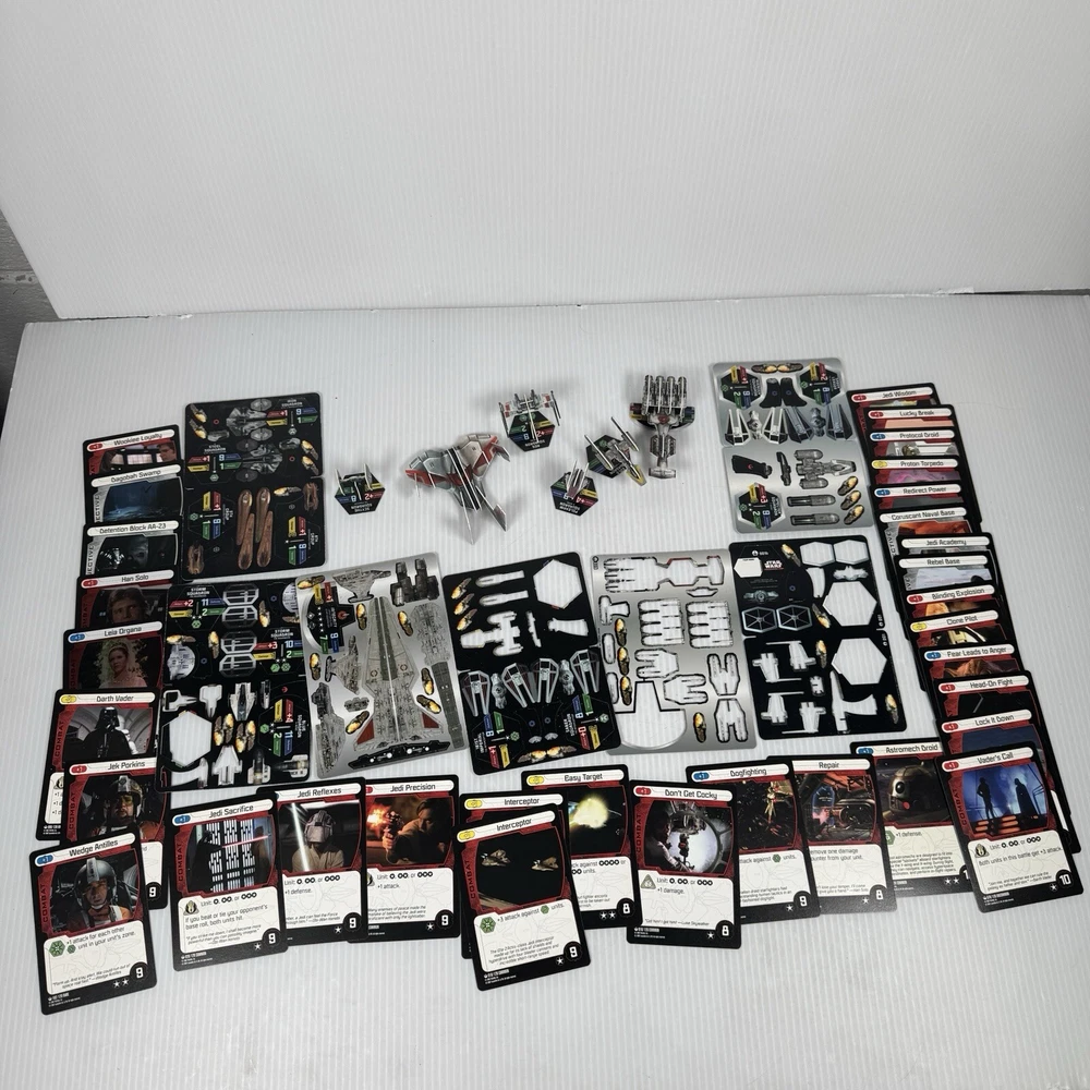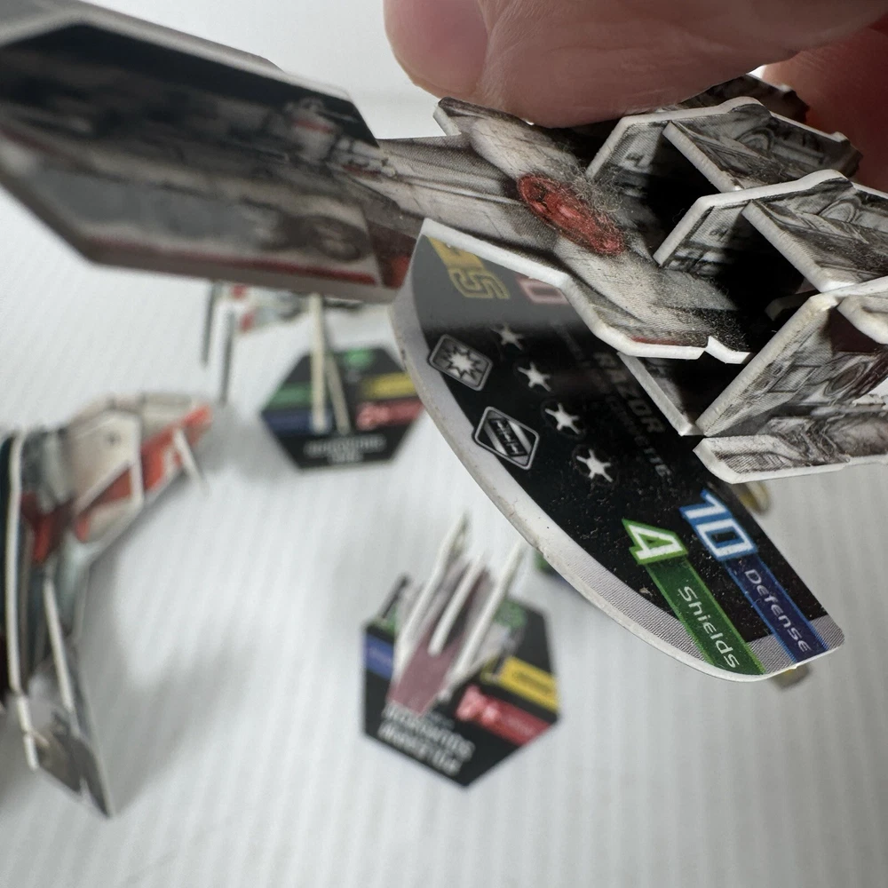 This is a mixed lot of several Star Wars Pocketmodel miniatures with some new on card, some assembled., and some TCG cards. See photos for details. Includes the Integrity and Razor ships.