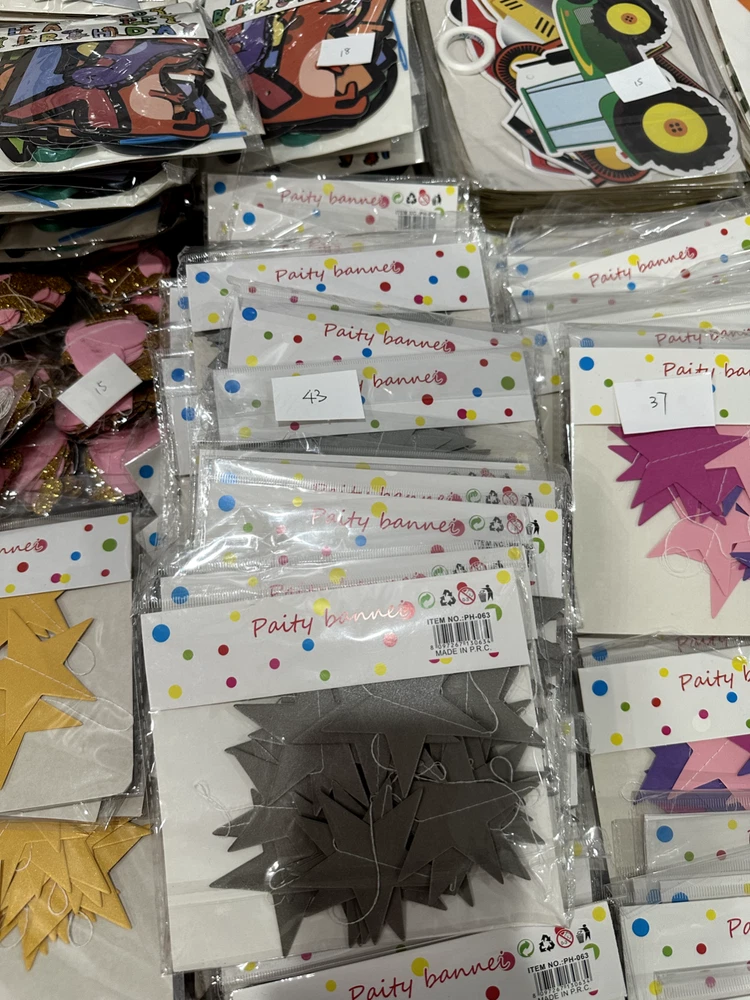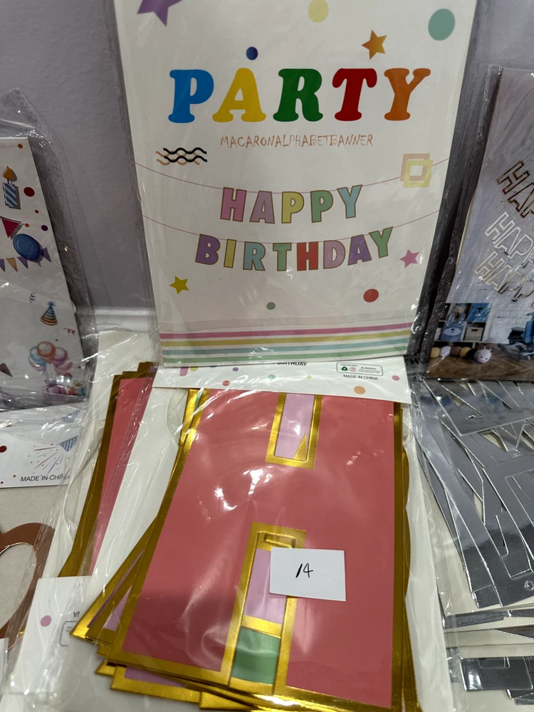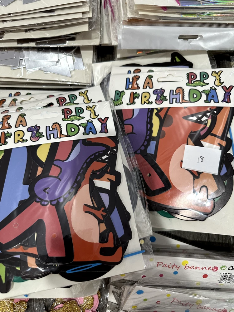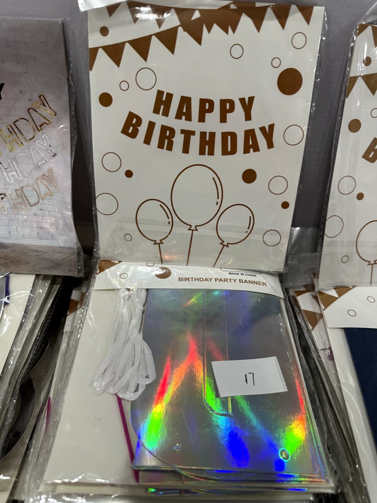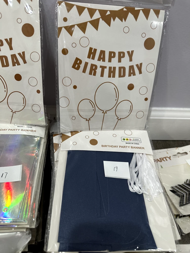 Store Closing Clearance Sales! Total 384 sets of banners, $1 each! Money saver for party supplies business! All banners are brand new, which are great for reselling. The number on the picture indicates the quantity of each banner.