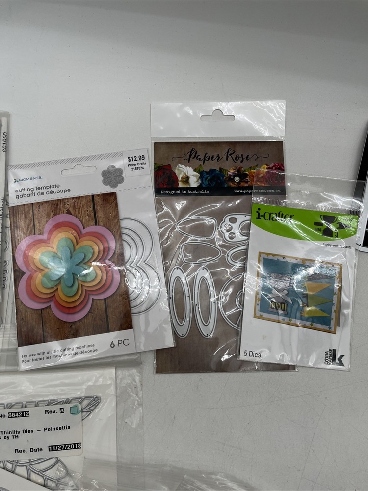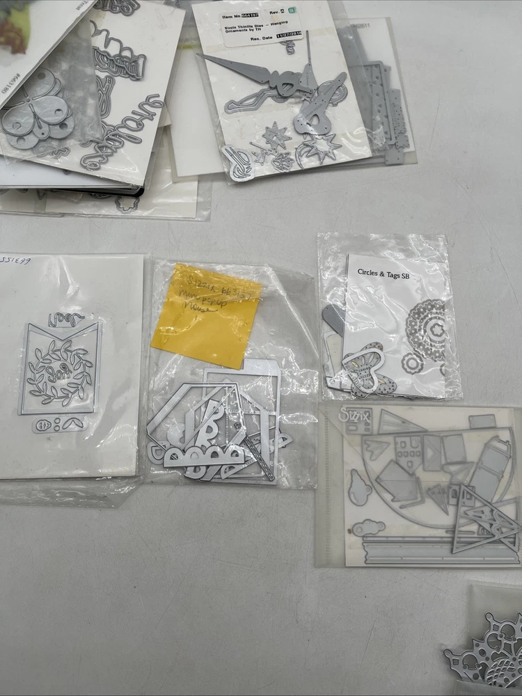 Large mixed lot of metal cutting dies, including Sizzix Thinlits and similar brands. This lot includes a variety of designs such as frames, decorative elements, seasonal shapes, and card-making sets. Several items appear to be new or unused in original packaging. Perfect for: • Scrapbooking • Card making • DIY crafts • Paper projects Condition: Mixed condition – includes both new (in packaging) and pre-owned dies with normal signs of use. Some sets may be incomplete. sizzix thinlits lot, cutting dies bundle, scrapbooking dies, card making supplies, metal dies bulk, craft dies lot