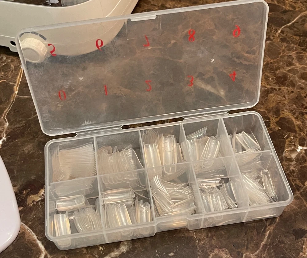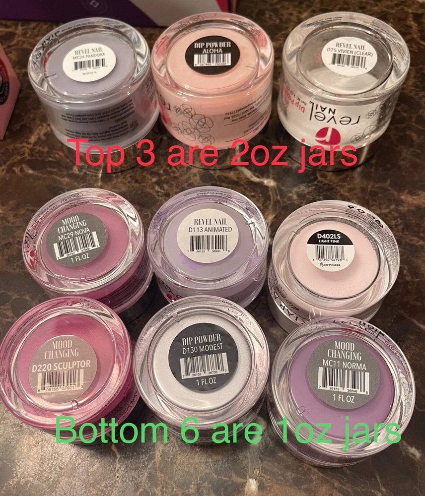 Huge Lot!! Nail dips, Poly Gel Kit, Nail Stamp Kit, French manicure dip case, Acrylic Nail set, Fruit charms, Brushes, nail dust fan & more! Nail dips include the following : 68 jars 0.5 oz each ( half an ounce ) of Revel nail dips, which includes holo chromes, color changing, glow in the dark dips, Retro Christmas set & Mani League set. 3 jars 2 oz each, of Revel nail dips one is half empty (1oz. Left) 6 jars 1 oz each, of Revel nail dips 3 jars 1 oz each, of Kiara Sky nail dips 2 jars 0.5 oz each? (Does not specify oz on jar) Condition of dips: Some are new & some are used, dip powder was poured over nails not dipped. Poly gel kit includes the following : Modelones Brand: - Nail Dehydrate/ Nail Primer Kit includes, 4 - 0.5 oz bottles in original box Gershion Brand: 1 - 0.27 fl oz Soak-off Gel Polish Base Coat, 1 - 0.27 fl oz Soak-off Gel Polish Top Coat 6 tubes 1.0 fl oz each Poly Nail Gel (Nail Extension Gel) Each a different color 1 Dual Headed Tool-Nail Brush/Spatula 1 pack of Dual forms 1 pack of extension forms Condition of Poly gel kit : Used once Born Pretty (Brand) Nail Stamp Kit : 6 various stamp nail art plates with 14 different designs on each plate which totals to 84 different designs, from flowers, palm trees, & lace. To bunnies, sea horses, birds, butterflies, angels & cupcakes. 1 0.2 fl oz Black Polish & 1 0.2 fl oz white polish 1 Transparent Stamper set (different brand) that includes stamper & scraping card Also 1 Born Pretty scraping card Condition of Nail Stamp Kit : Used Once Other various items include : About 100 Blank clear (unused) Swatches with 2 rings About 60 colored (& labeled) Swatches on a ring 12 containers of various fruit slice charms 1 container of multicolored rhinestones 11 Picker Dotting Pens (All New, but one) 3 Nail dusting brushes (All New) 7 wooden cuticle pushers 1 Plastic box of acrylic nails (various sizes) (All New) 1 Polish bottle holder 1 Electric Dust Fan - Used, but works great! 1 Kiara Sky French Manicure Dip Case in box (used once) Originally Paid around $1,200.00 Total for everything! Asking: $300.00 OBO