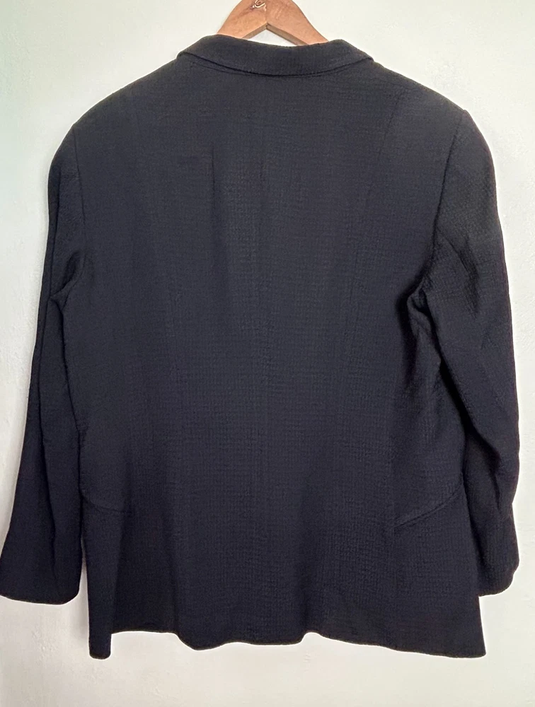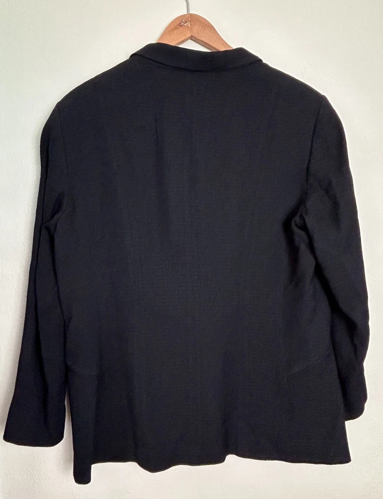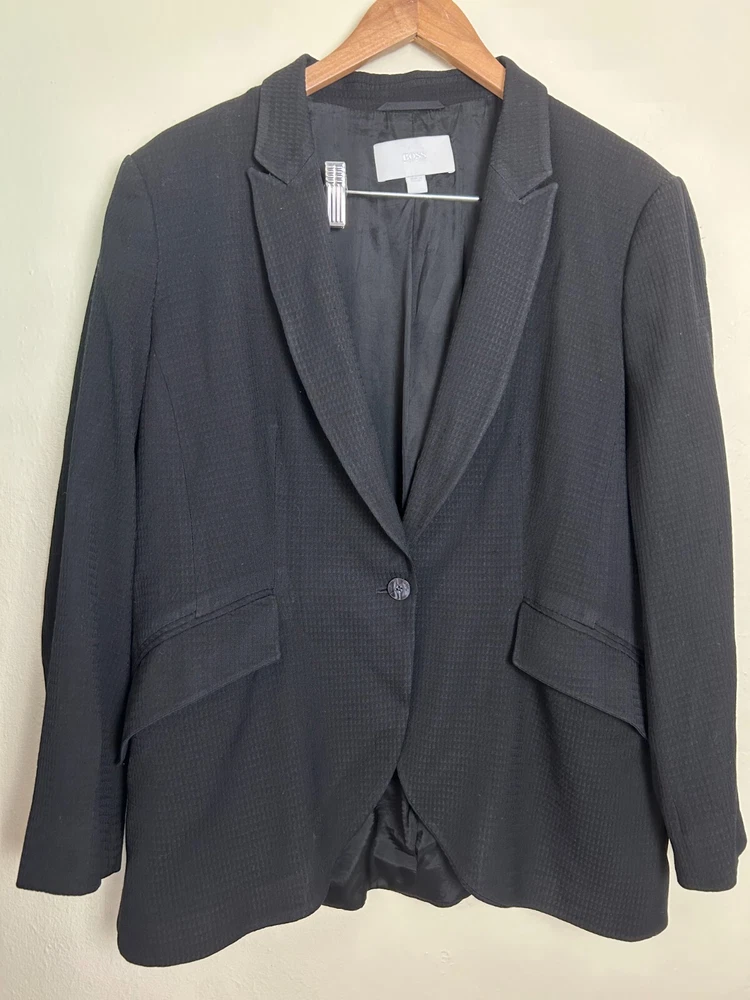 Hugo Boss Blazer BLACK Women's Size 14 US Jabina Stretch Wool Blend One Button *This item is in GOOD condition. Please see pictures for more detail. * (We grade most items as Good if preowned; even if they are above good condition, since they are pre-loved and are not perfect. Items will always be noted if they are stained or ripped.) Sold from a smoke free home and shipped within the USA; packaged with care! Thank you for supporting our small family business! . 🌼 *PLEASE REVIEW PICTURES FOR MEASUREMENTS AND ASK QUESTIONS BEFORE BUYING. TAKE YOUR MEASUREMENTS FOR CLOTHING ITEMS AND COMPARE TO MEASUREMENTS IN PHOTOS TO DETERMINE IF THIS ITEM WILL FIT YOU. RETURN SHIPPING IS NOT FREE FOR SELLERS AND IS AN UNNECESSARY HASSLE FOR BUYERS. TAKE YOUR MEASUREMENTS. *All trademarks, brand names, and logos stated in this listing are used for identification purposes only and are registered trademarks of their respective owners who reserve the rights of ownership. * Returns : No Returns for this item. Look at measurements before buying.