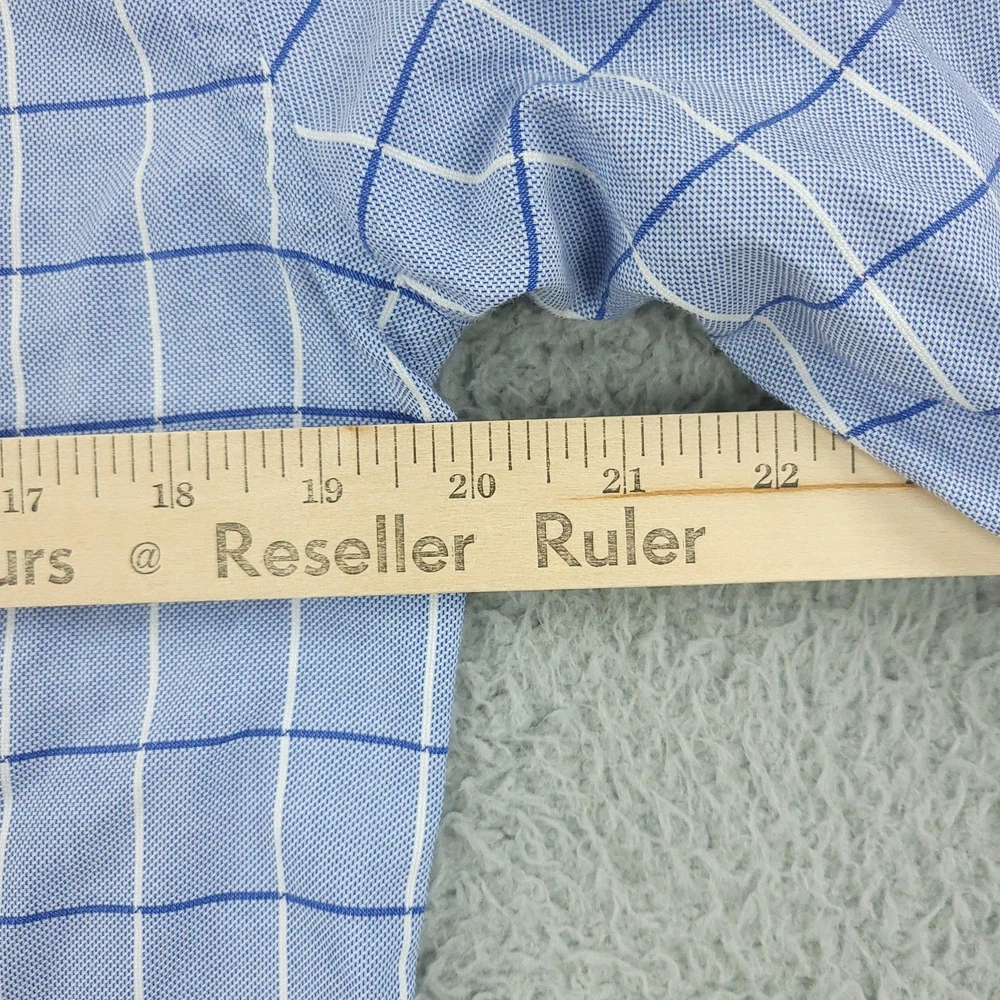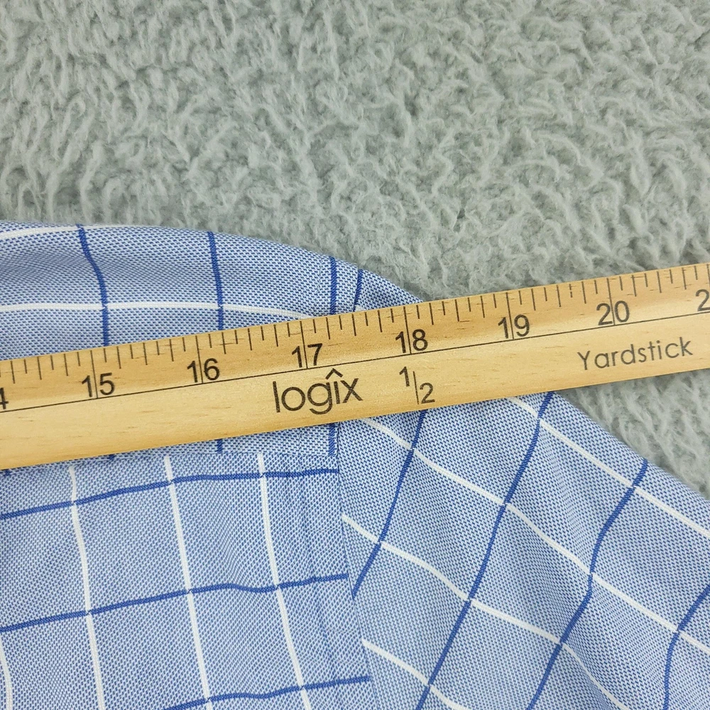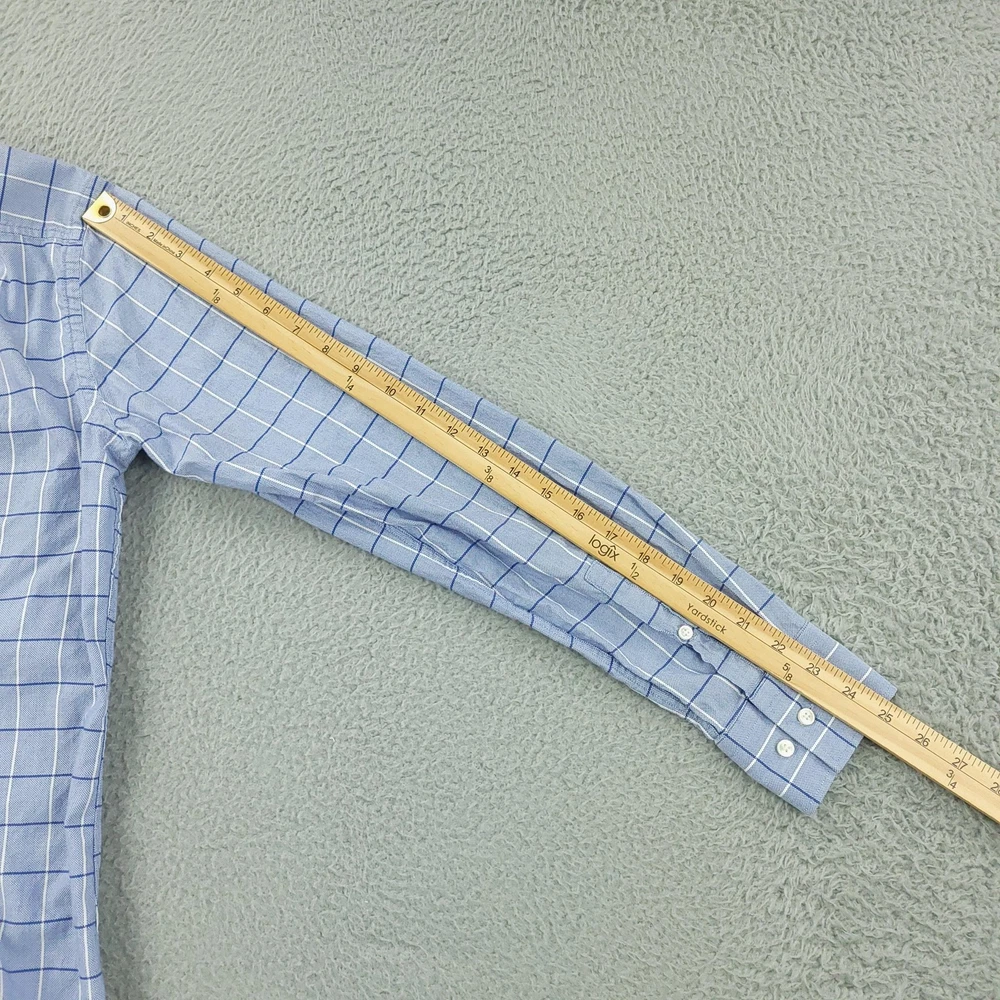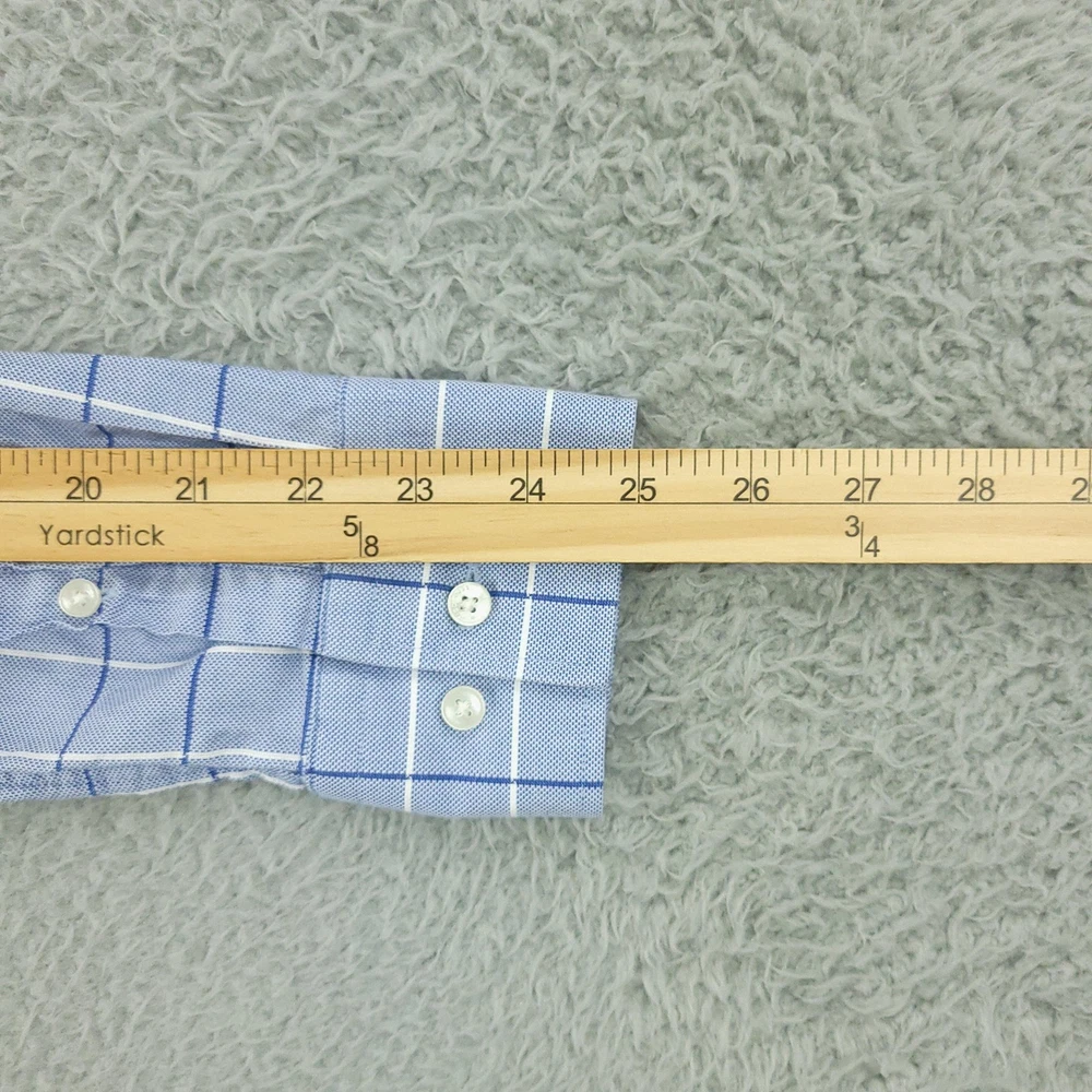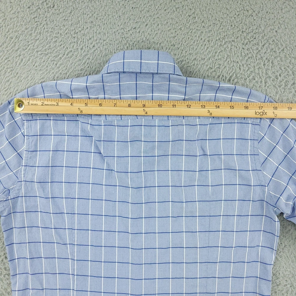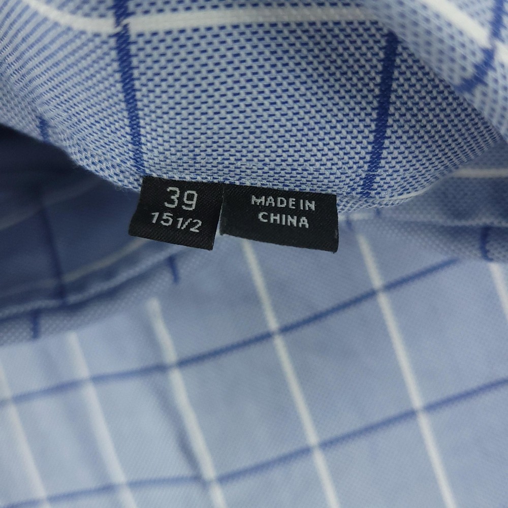 Hugo Boss Dress Shirt Mens 15.5 34/35 Blue Check Slim Fit Long Sleeve Button Brand: Hugo Boss Style: Mens slim fit long sleeve dress shirt with a blue check windowpane pattern. Color: Light blue with white and darker blue check lines. Size on tag: 39 / 15.5 neck with 34/35 sleeve length. Details: Point collar, full button front, barrel cuffs with adjustable buttons, curved hem, no chest pocket. Made in China. Measurements are included in the photos, compare measurements with your item to ensure proper fit. Items are added daily click here to Visit My Store Combined shipping for US customers is 1.99 for each additional item Items are cleaned per eBay standards & policies