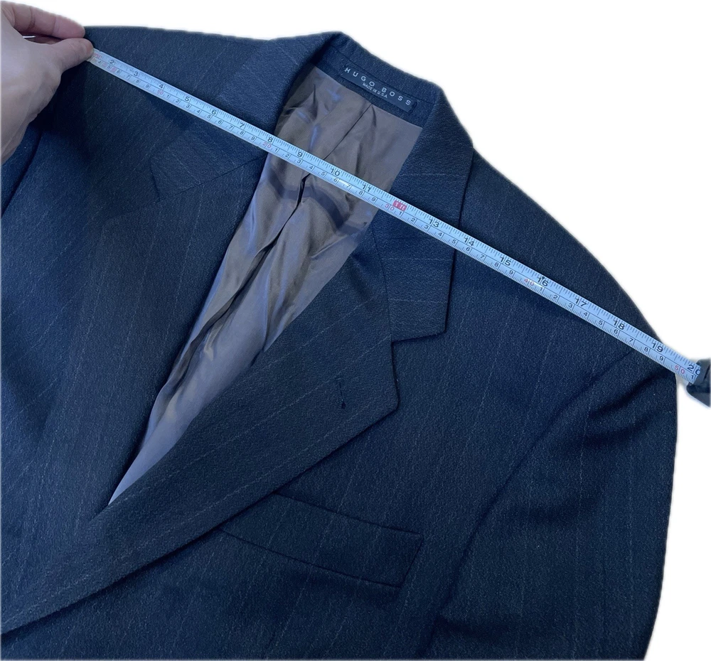 Size: 40 Type: Blazer Theme: USA Style: Blazer Size Type: Regular Brand: HUGO BOSS Department: Men Material: Wool Color: Gray Pattern: Striped