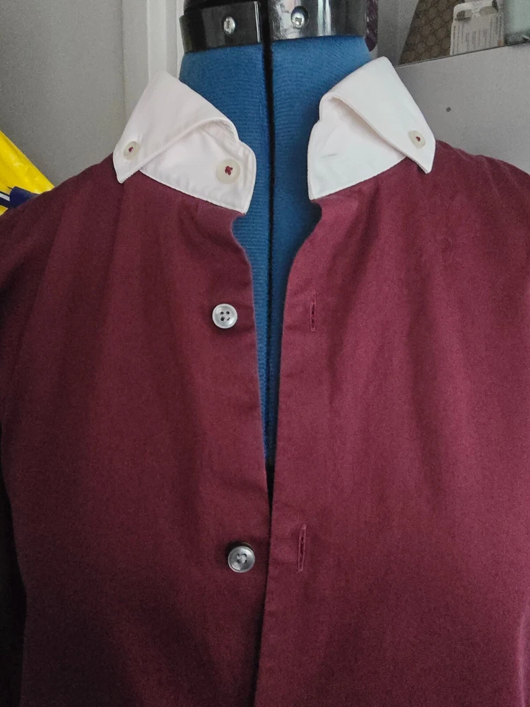 HUGO BOSS JENNIS SHIRT IN BURGUNDY WITH WHITE CONTRAST CUTAWAY COLLAR SLIM FIT SIZE 17/43 PIT-PIT 23" LOVELY LOOKING SMART SHIRT