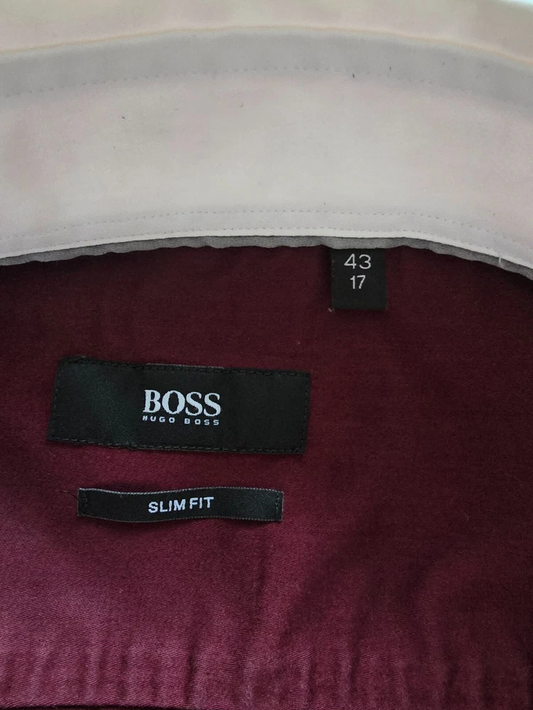Hugo Boss Shirt Men Jennis English Cutaway COLLAR BURGUNDY SIZE 17/43 SLIM FIT