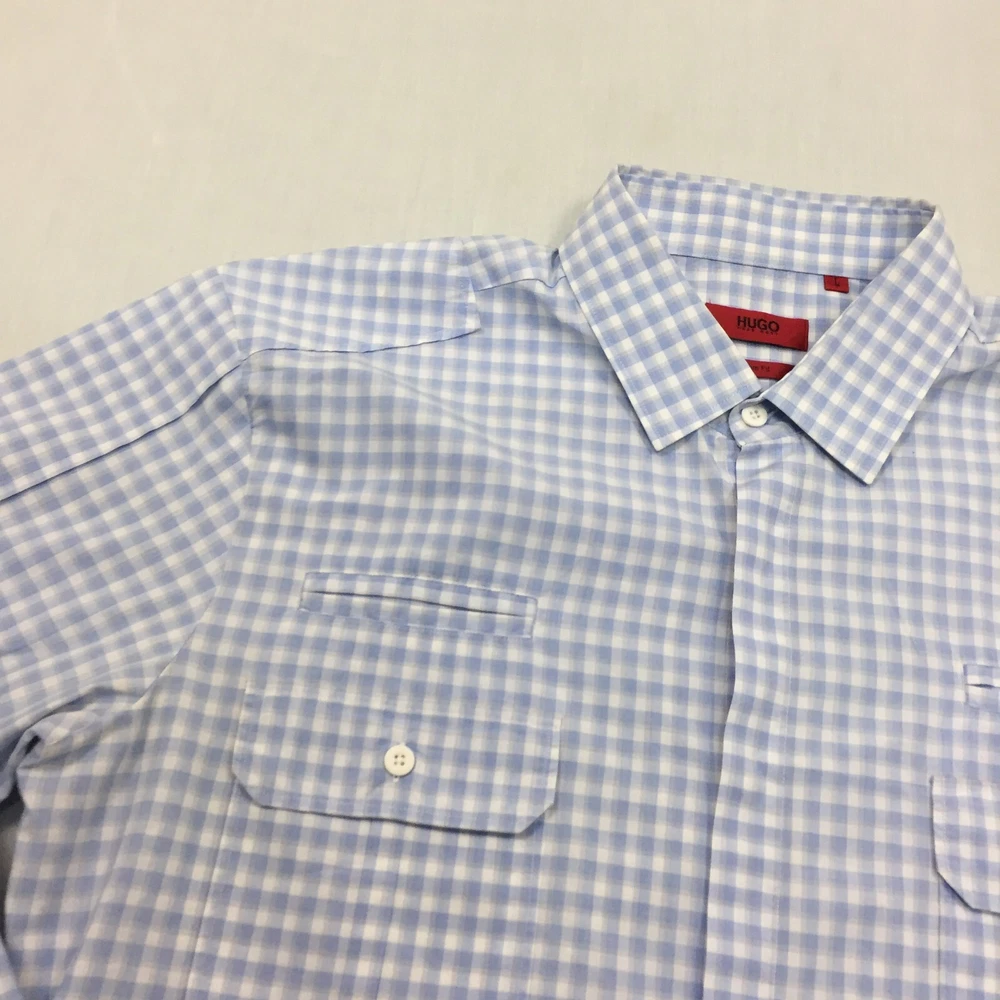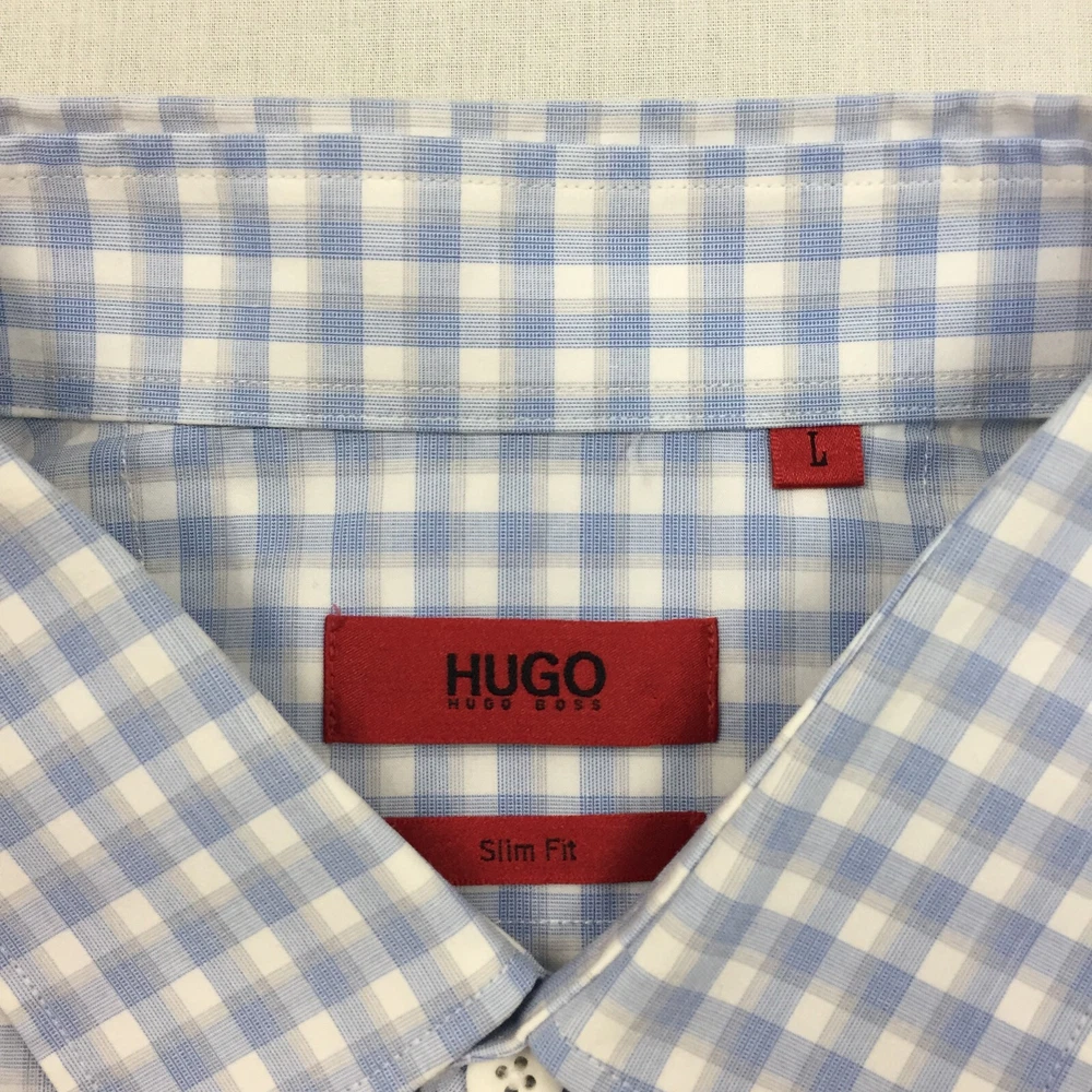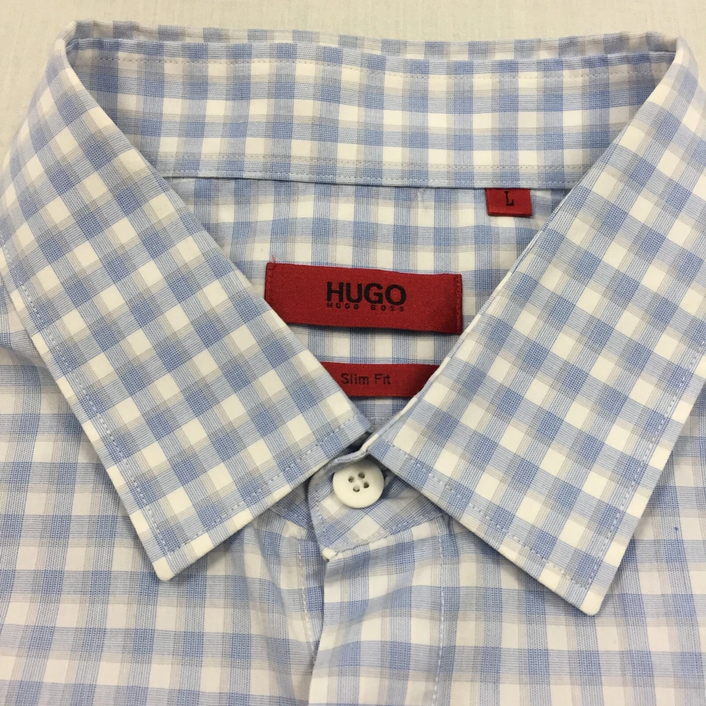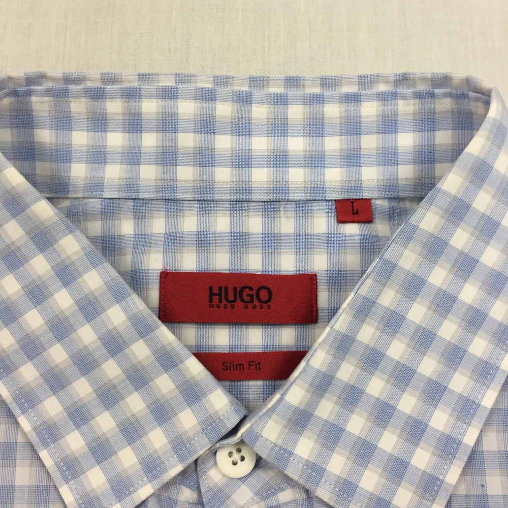 Closure: Button Department: Men Garment Care: Machine Washable Season: Autumn, Spring, Summer, Winter Accents: Button Sleeve Length: Long Sleeve Country/Region of Manufacture: Unknown Material: Cotton Blend Colour: Blue Fit: Regular Occasion: Business, Casual, Formal Type: Button-Up Handmade: No Theme: Classic Size Type: Regular Features: All Seasons Vintage: No Brand: HUGO BOSS Collar Style: Button-Down Size: L Seller Notes: “Good used condition, check below for full description & photos.” Personalise: No Pattern: Check Neckline: Collared Fabric Type: Canvas