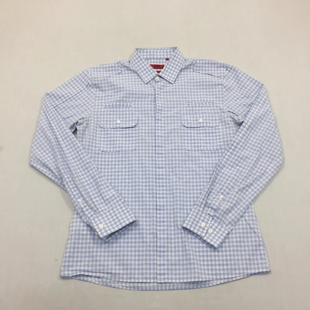 Hugo Boss Shirt Mens Large Button Up Long Sleeve Blue Check (L)