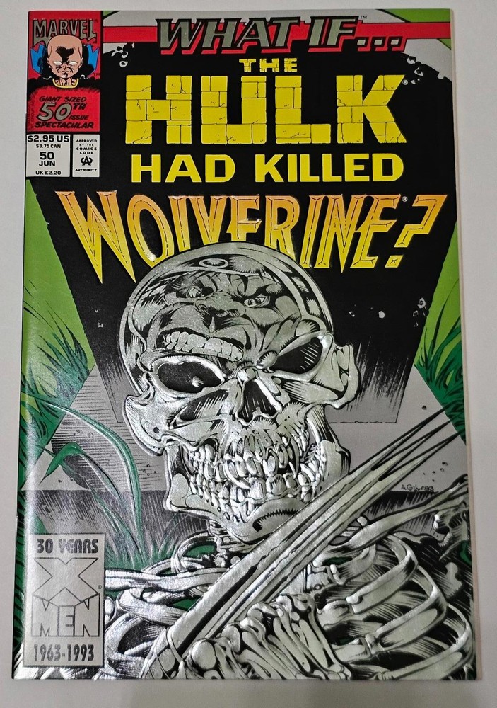 What If 50 What If The Hulk Had Killed Wolverine? 1993 Marvel Embossed Cover This special issue has a cardstock cover that is both embossed, and foil enhanced, giving it a 3D effect. Excellent condition. Check out the photos for condition details.