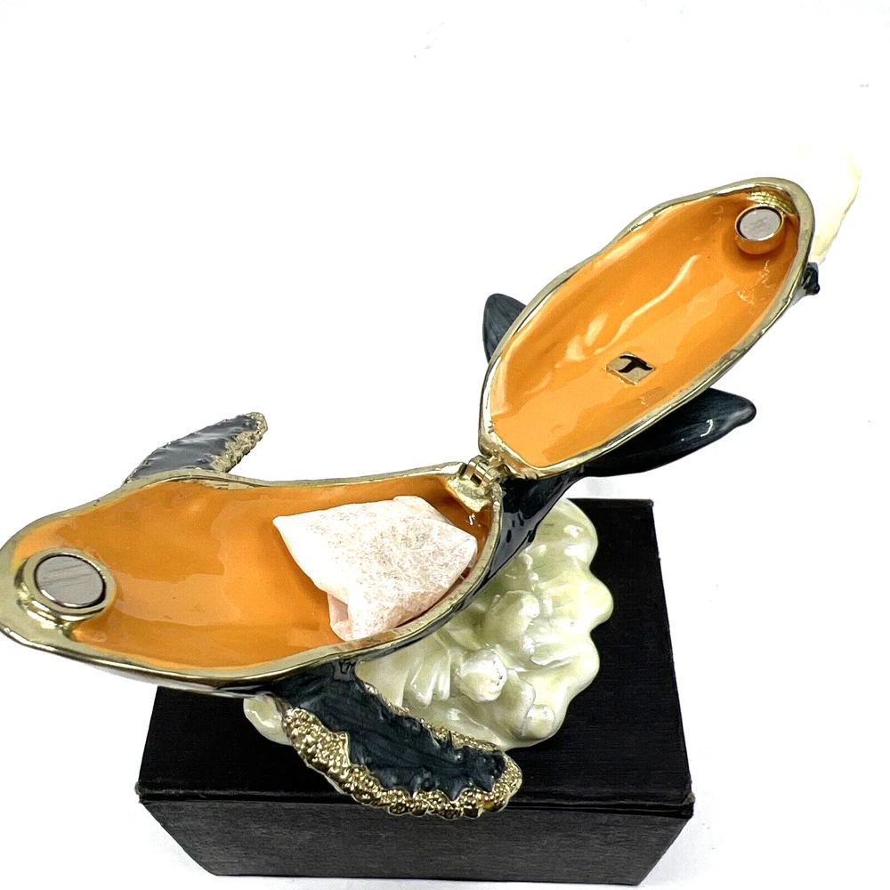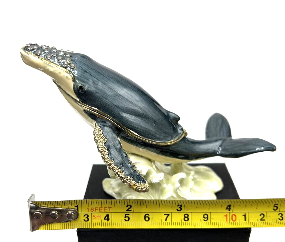 1. This stunning enamel trinket box with a humpback whale design is absolutely breathtaking! The vibrant colors and intricate detailing make it a true standout piece. The magnetic closure keeps everything secure, and the included 16-inch necklace is a lovely bonus. It’s perfect for storing small treasures or displaying as a decorative accent. The craftsmanship is top-notch, and the fact that it’s an original estate piece adds a special touch. Packaged with care, it’s sure to arrive safely and become a cherished keepsake in its new home!