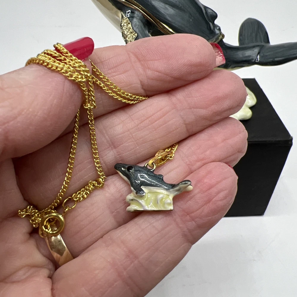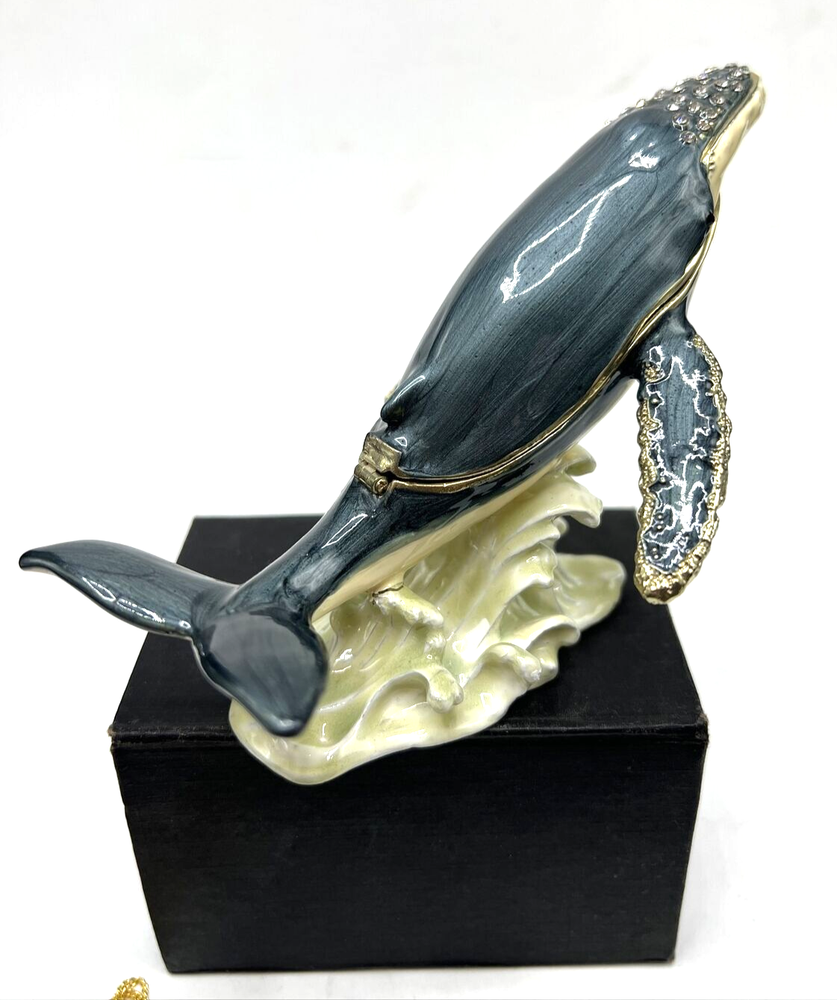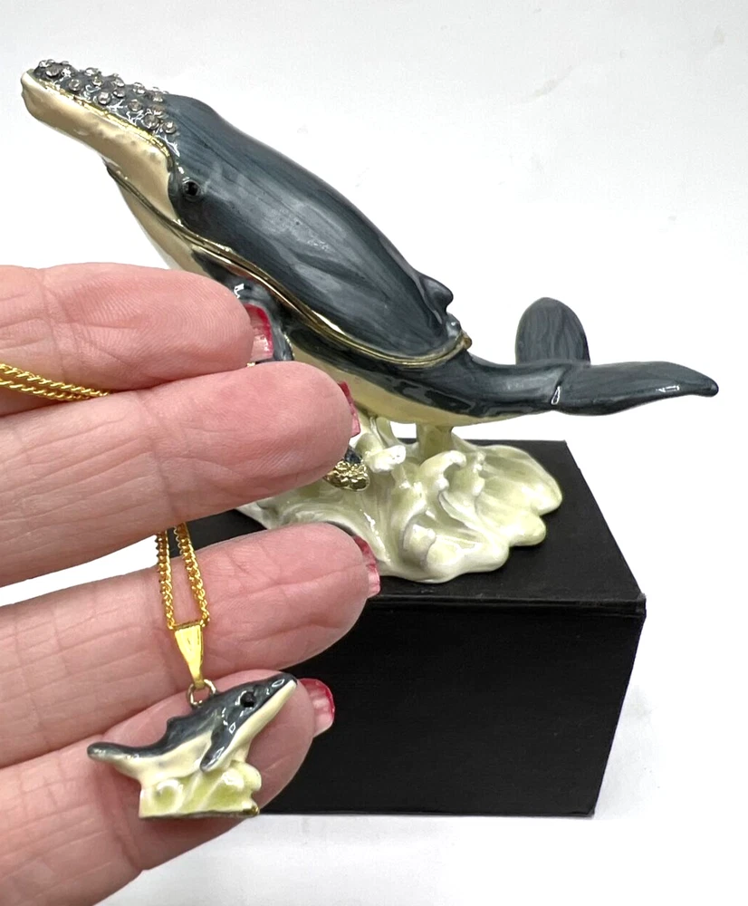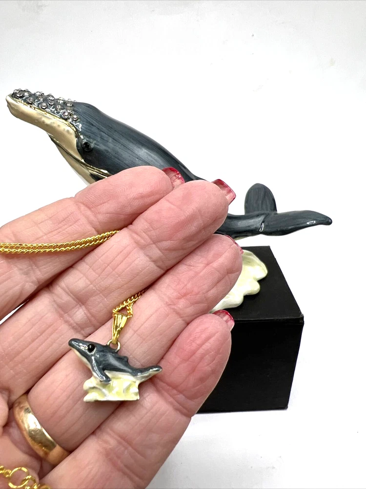 Humpback Whale Enamel Jeweled Trinket Box with 16-Inch Necklace