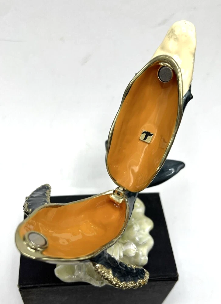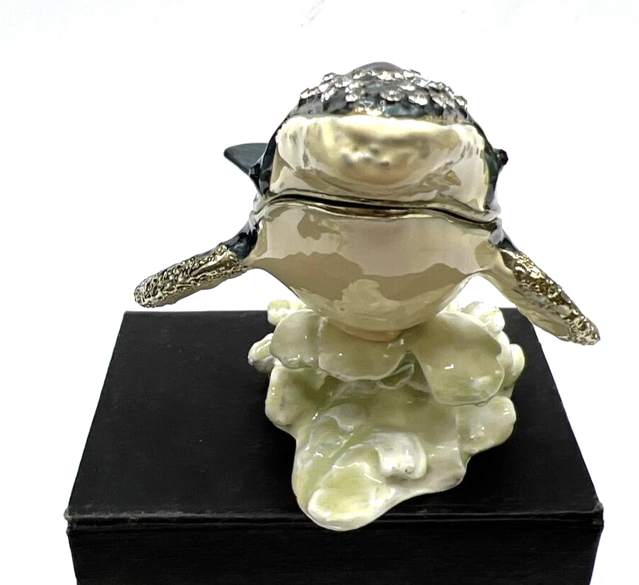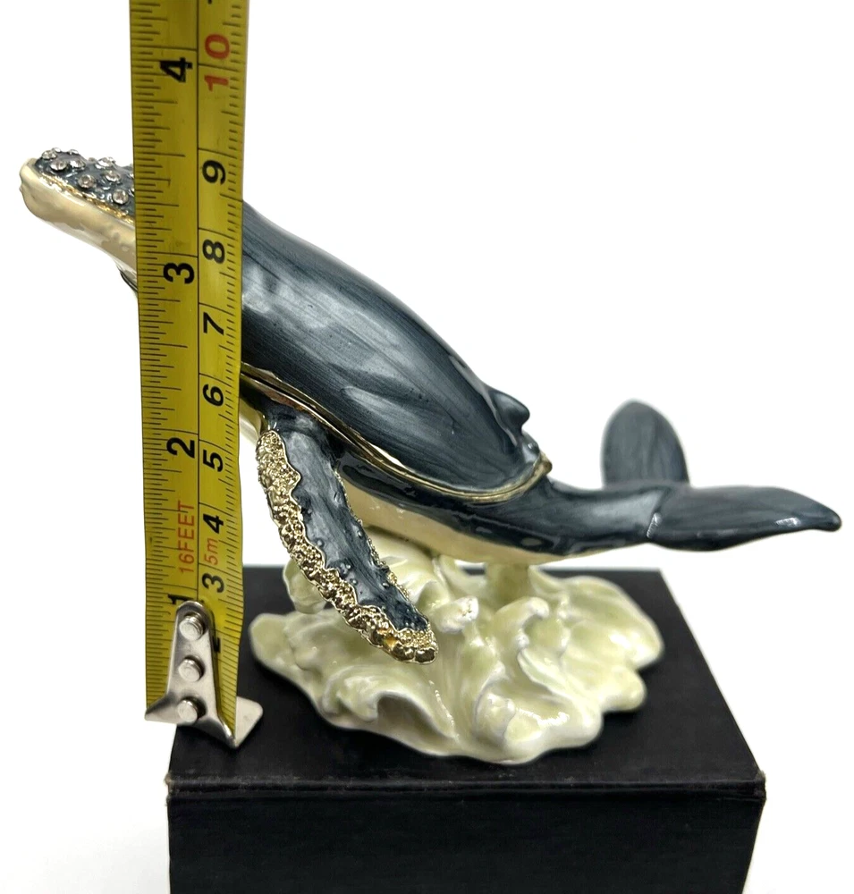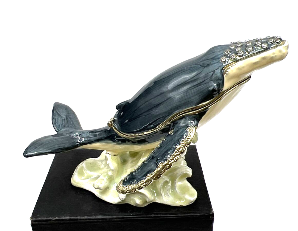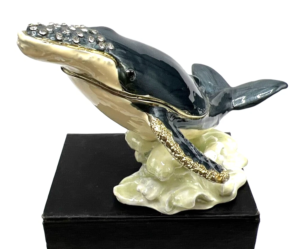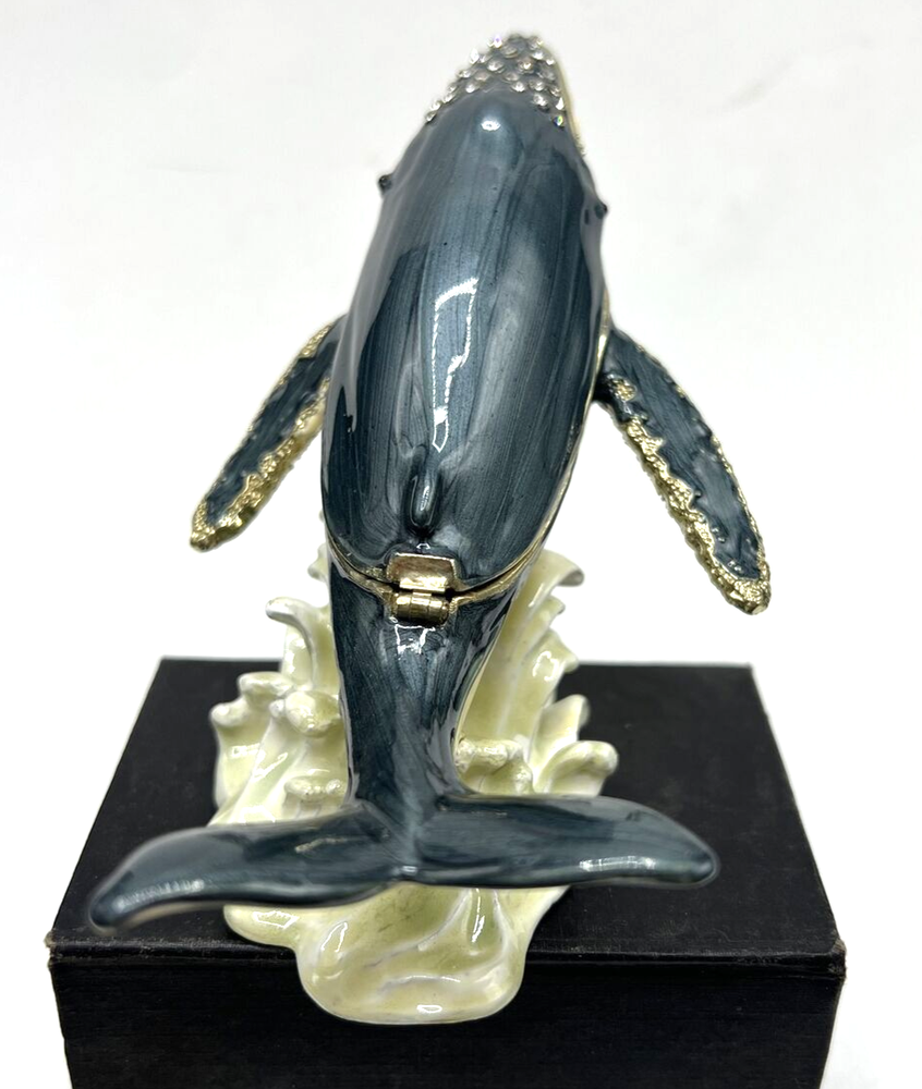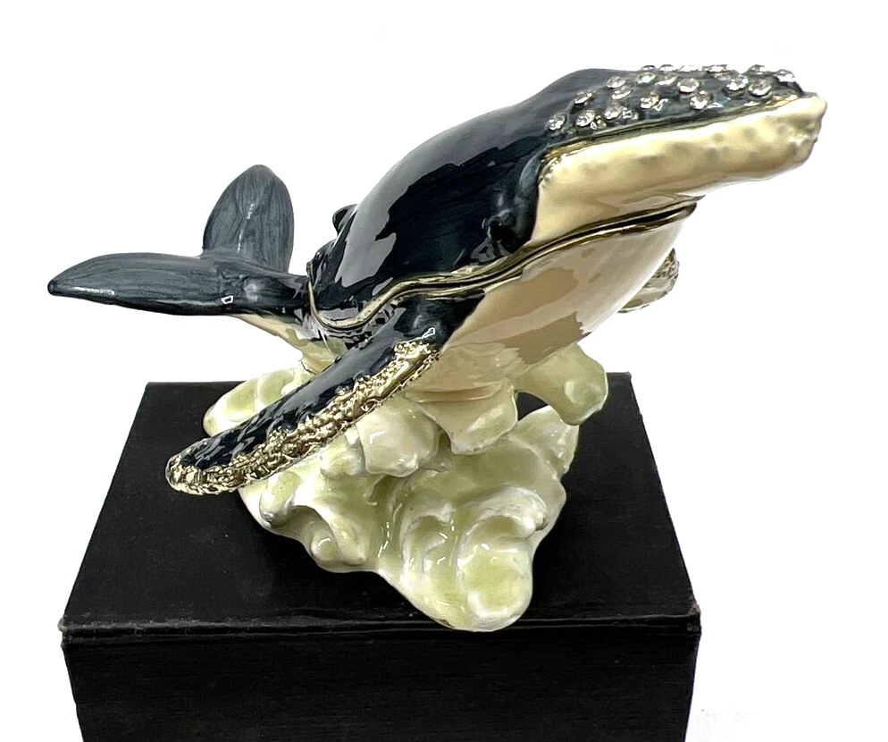 Collection: Keepsake Boxes Type: Trinket Box Product Type: Jeweled Enameled Trinket Box Customized: No Occasion: All Occasions Handmade: No Item Condition: Excellent Engraved: No Closure Type: Magnetic Theme: Hump Back Whale Original/Reproduction: Original Material: Enamel Seller Notes: “Pre owned Excellent condition” Features: Boxed Color: Multicolor Finish: Jewelled Subject: Whale