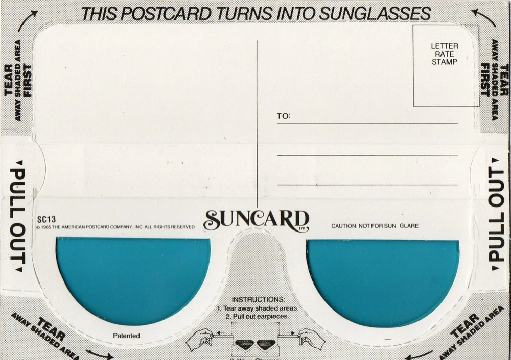 Original/Licensed Reprint: Original Type: Pop out sunglasses Year Manufactured: 1985 Era: Photochrome (1939-Now) Postage Condition: Unposted Unit of Sale: Single Unit Subject: Humphry Bogart UPC: does not apply Country/Region of Manufacture: United States Theme: Classic entertainment gtin13: does not apply