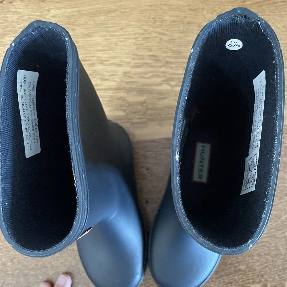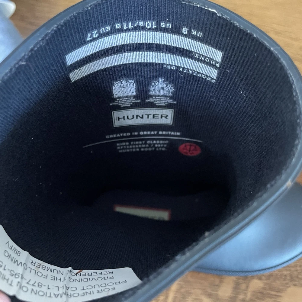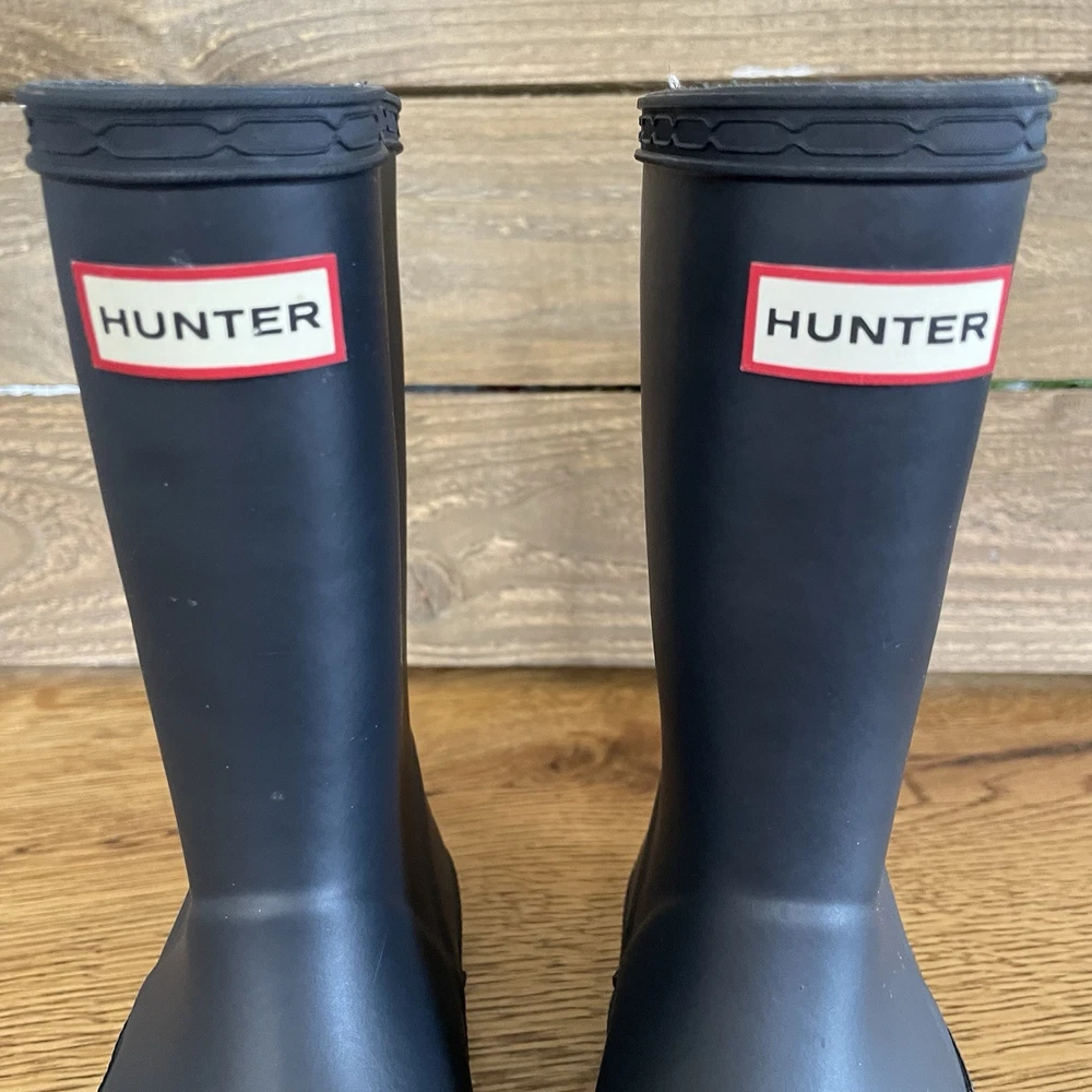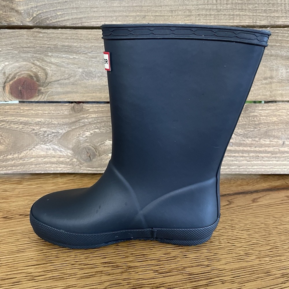 The Hunter First Classic Rain Boots in black are durable and waterproof, perfect for all seasons. With a round toe shape and pull-on closure, these boots are easy to put on and take off. The classic rain boot style, along with the Hunter logo accents, make them both stylish and practical for any weather. Designed for kids in US size 10B/11A or UK size 9, these boots are sure to keep your little ones dry and comfortable in all types of rain.