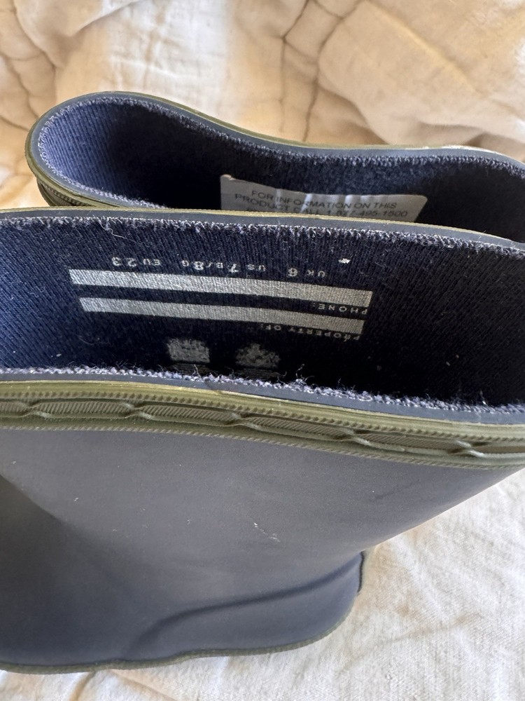 Hunter Kids First Classic Rain Boot Blue And Green - Size B 7, G, 8. Condition is New with defects. Shipped with USPS Ground Advantage.