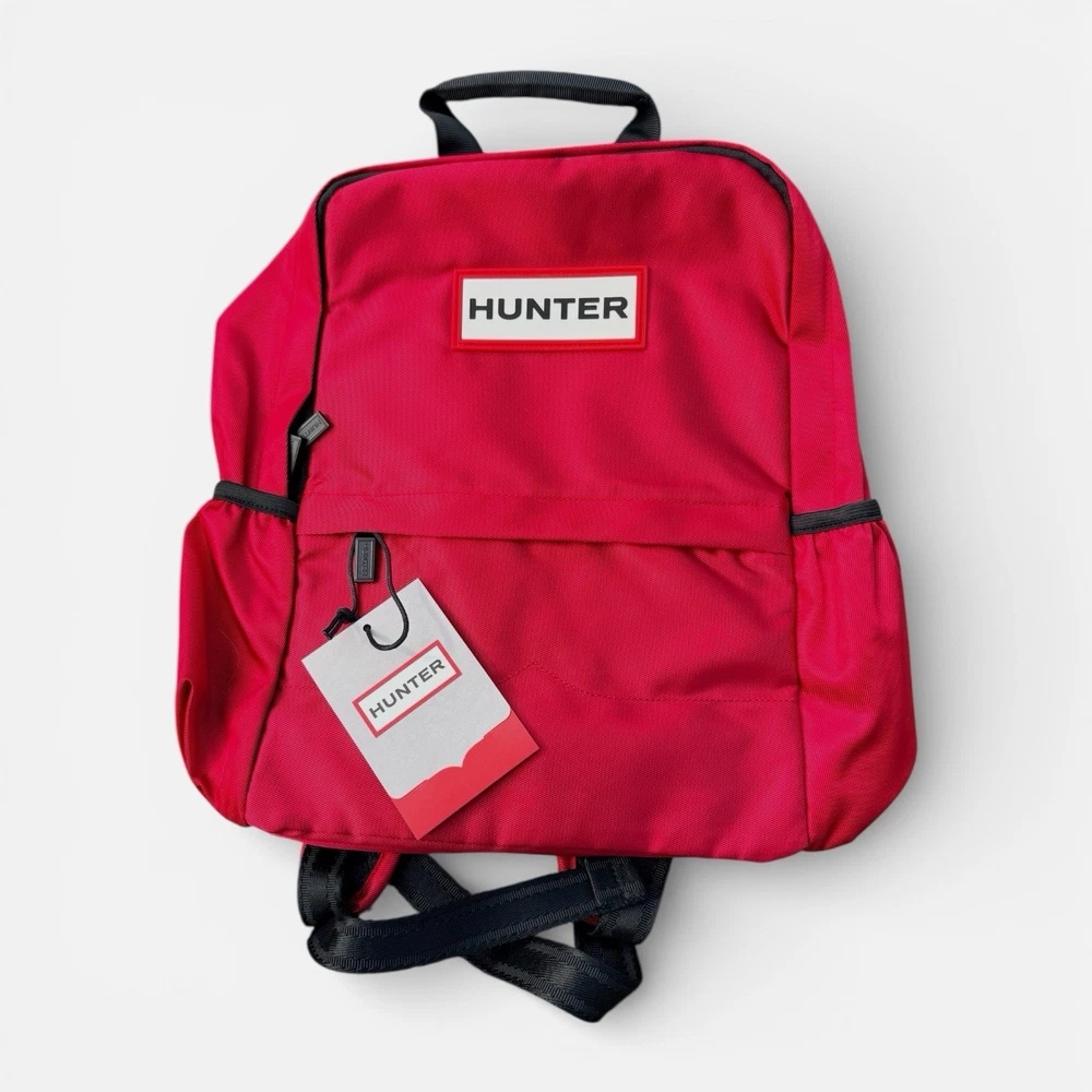 Condition: New with tags. Never used. No defects noted. ⸻ Description: Authentic Hunter Nylon Small Backpack in Military Red. Lightweight, durable, and water-resistant—perfect for everyday use, travel, or school. Features a double zipper main compartment, padded adjustable straps, and a sleek minimalist design with the classic Hunter logo on the front. Includes side pockets for bottles and a front zipper pocket for quick-access items. ⸻ Item Details: Brand: Hunter Model: Nylon Small Backpack Color: Military Red Material: 100% Nylon Capacity: 16L ⸻ Measurements: Height: 14.6 in Width: 10.7 in Depth: 5.2 in ⸻ Features: • Water-resistant nylon construction • Double zipper closure • Front zip pocket • Elasticated side pockets • Internal padded sleeve (fits up to 13.5” laptop) • Adjustable padded shoulder straps • Top carry handle