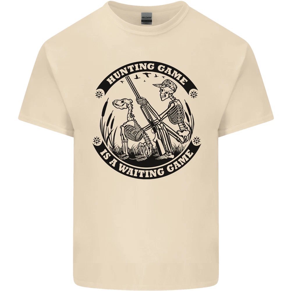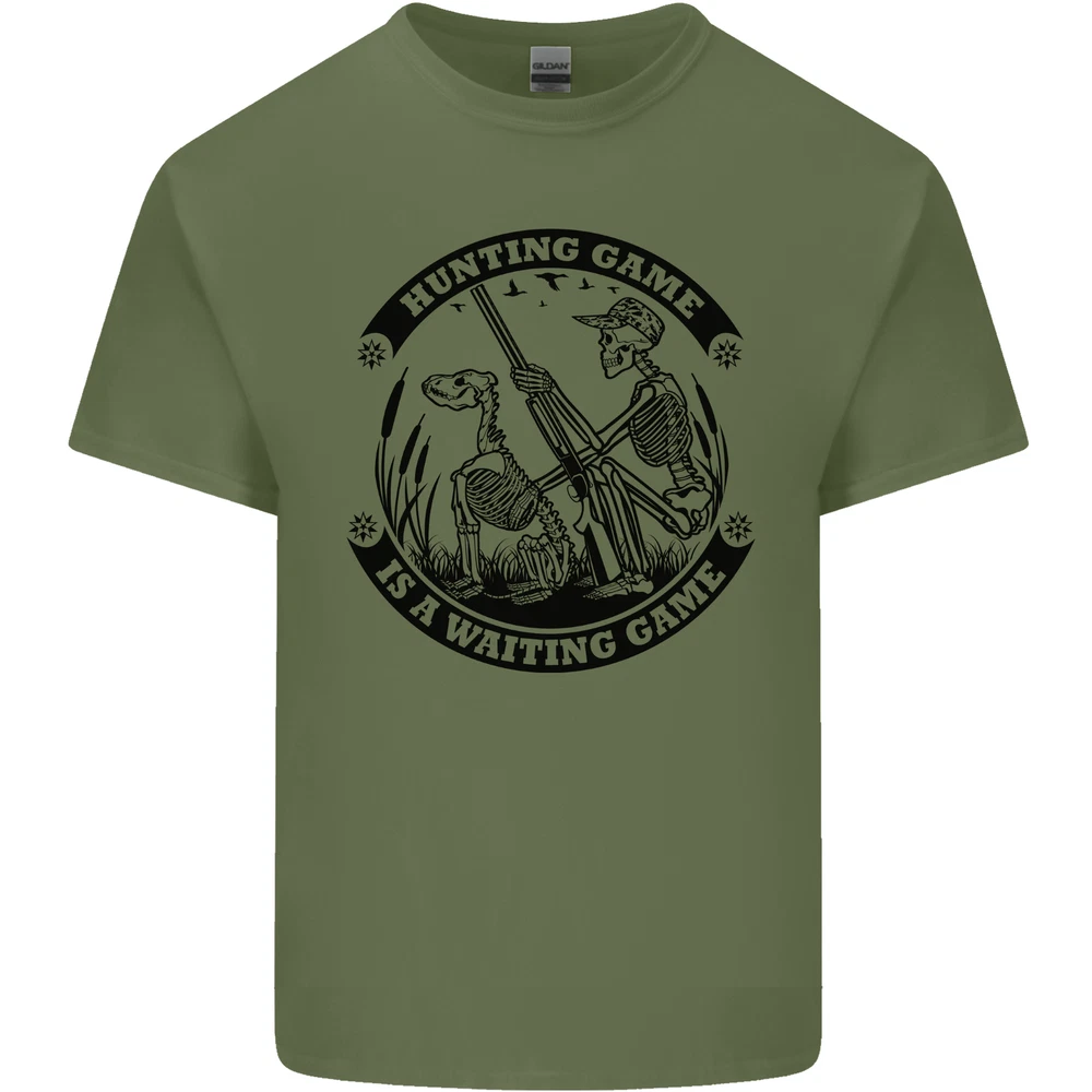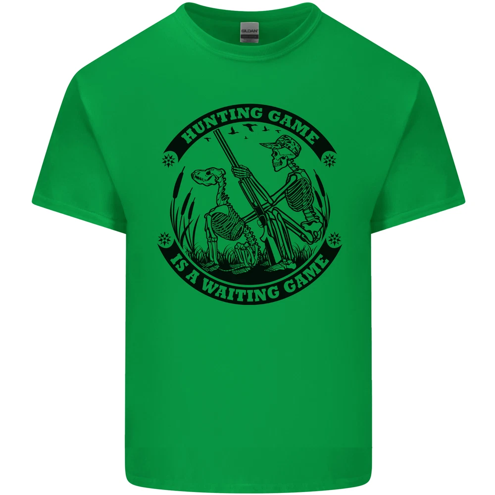 Hunting Game is a Waiting game Hunter Skull Mens Cotton T-Shirt Tee Top