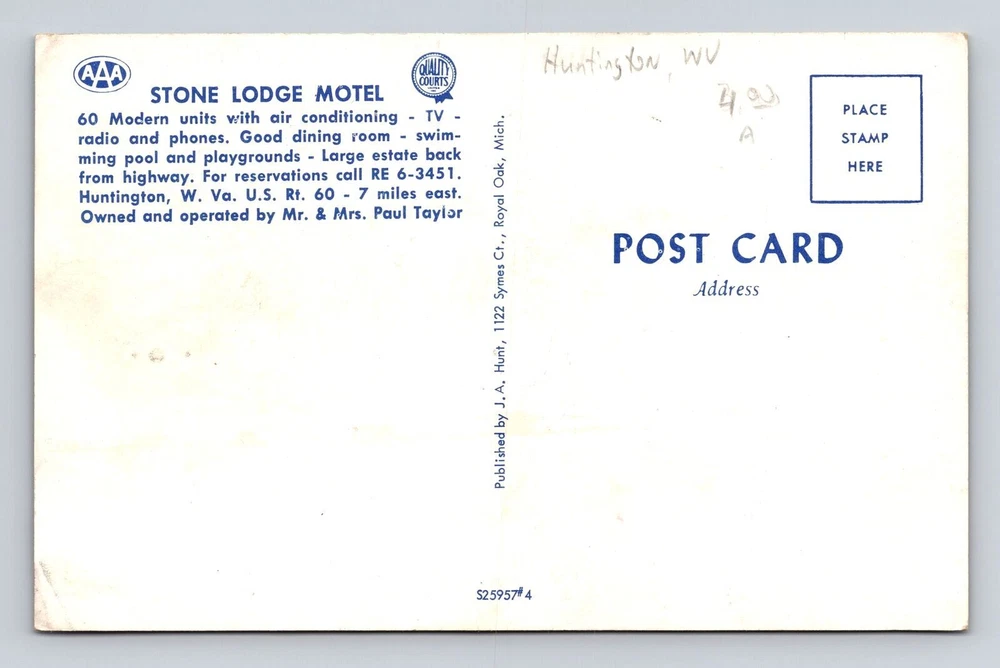 Huntington WV-West Virginia, Stone Lodge Motel Advertising, Vintage Postcard