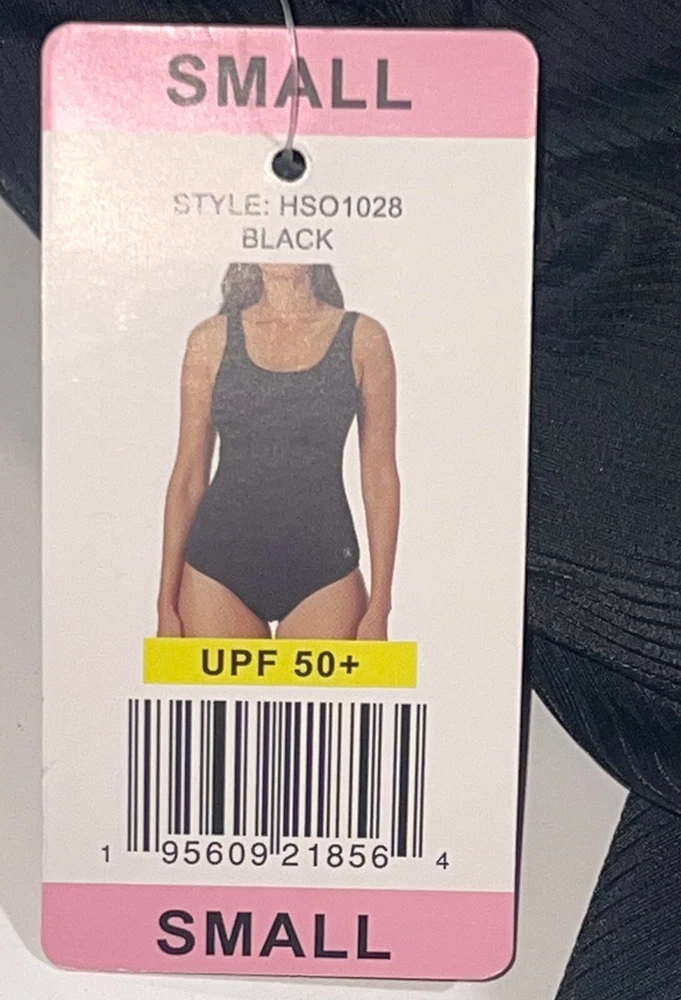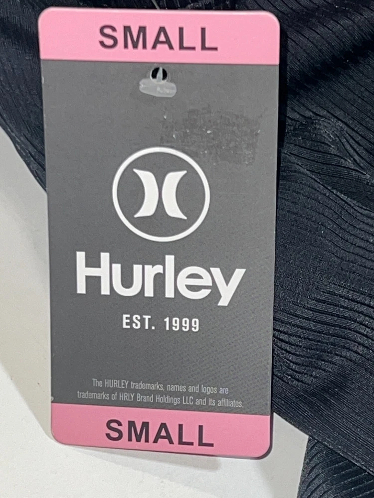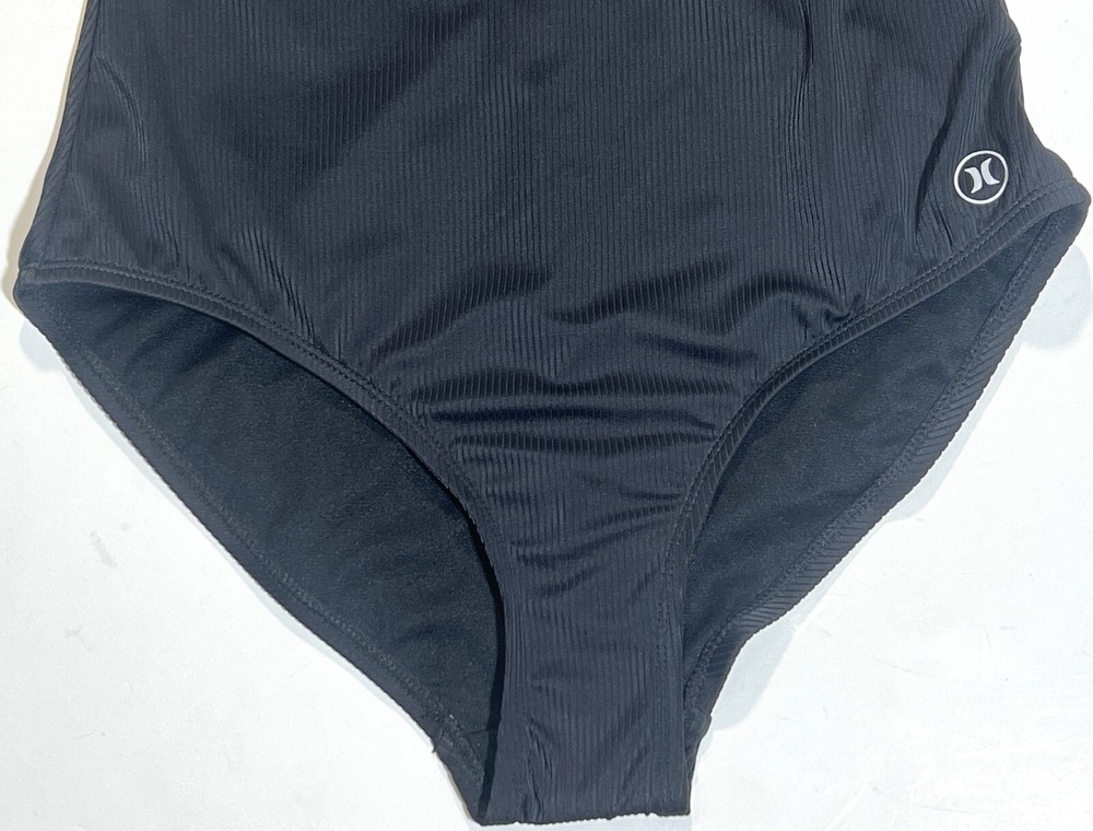 Brand NEW With Tags Hurley Black Ribbed Textured UPF 50+ One-Piece Bathing Suit Swimsuit ~ Women's Size S - Small. Measures: 14" flat across the front from underarm to underarm unstretched and 29" from shoulder to crotch.