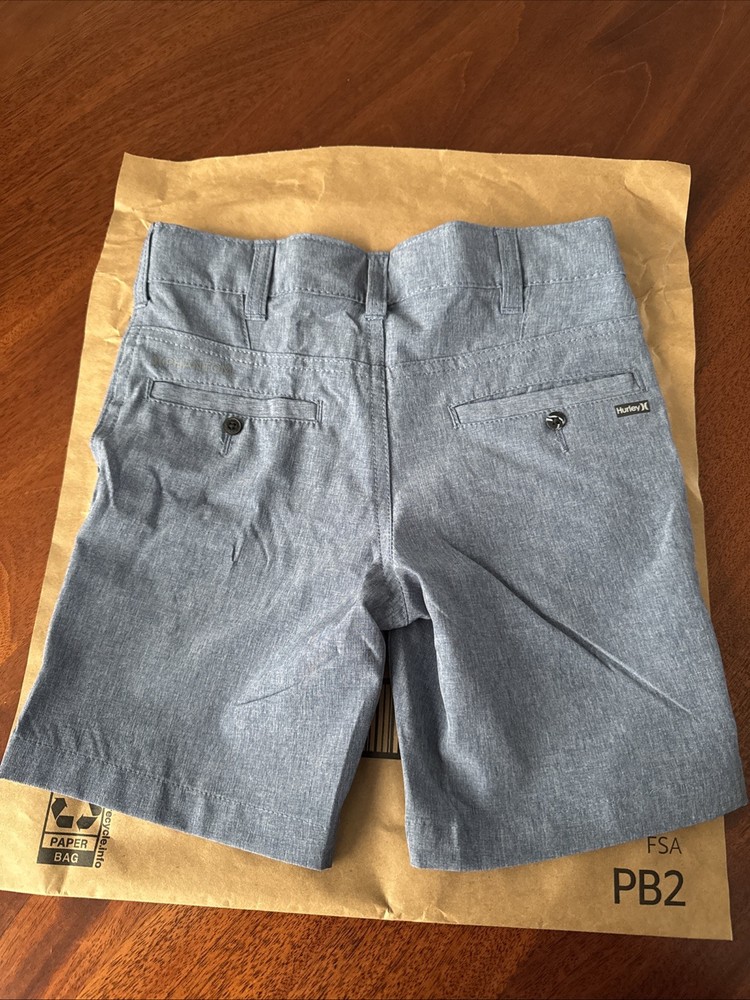 The Hurley Boys Hybrid Short in size 4 is a stylish and comfortable athletic short perfect for boys. Made with a blend of polyester and elastane, these shorts offer a 4-way stretch for flexibility and ease of movement. The khaki blue color and solid pattern make them versatile for both casual and activewear occasions. With an elastic waist and drawstring closure, these shorts provide a customized fit while the flat front and mid rise silhouette ensure a classic and trendy look. Machine washable for easy care, these shorts are a practical and fashionable choice for boys of size 4.