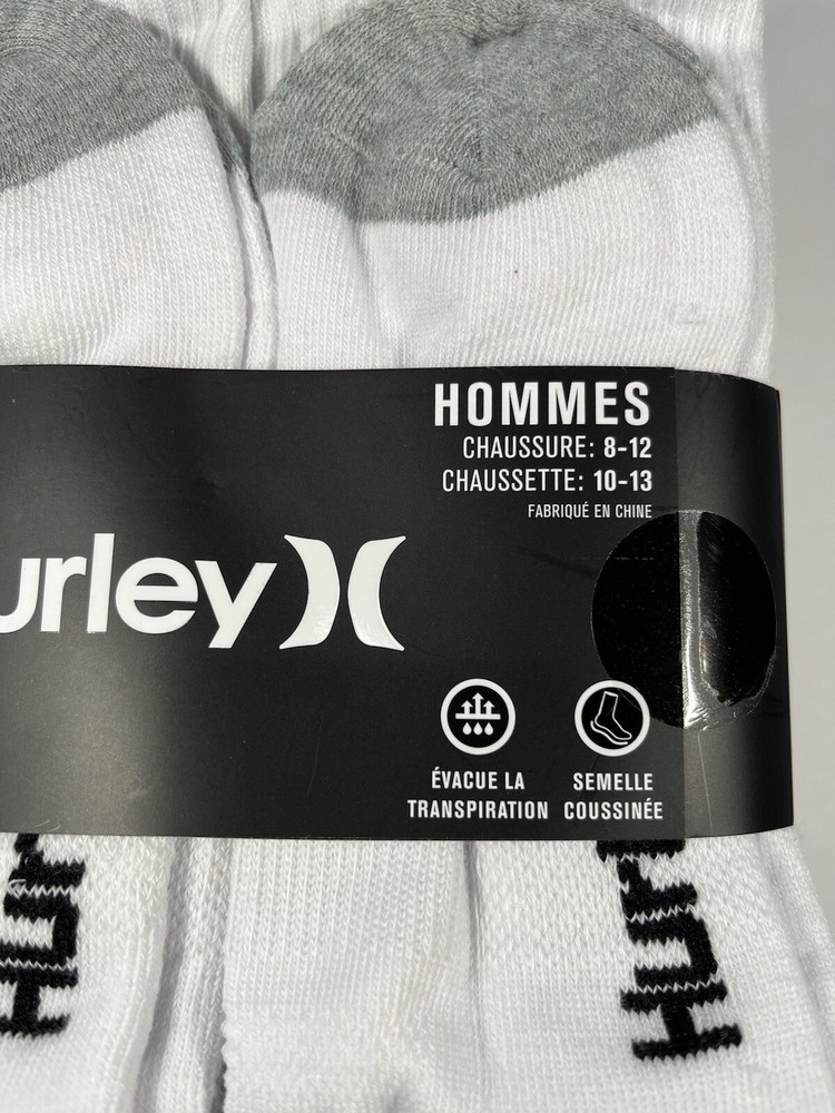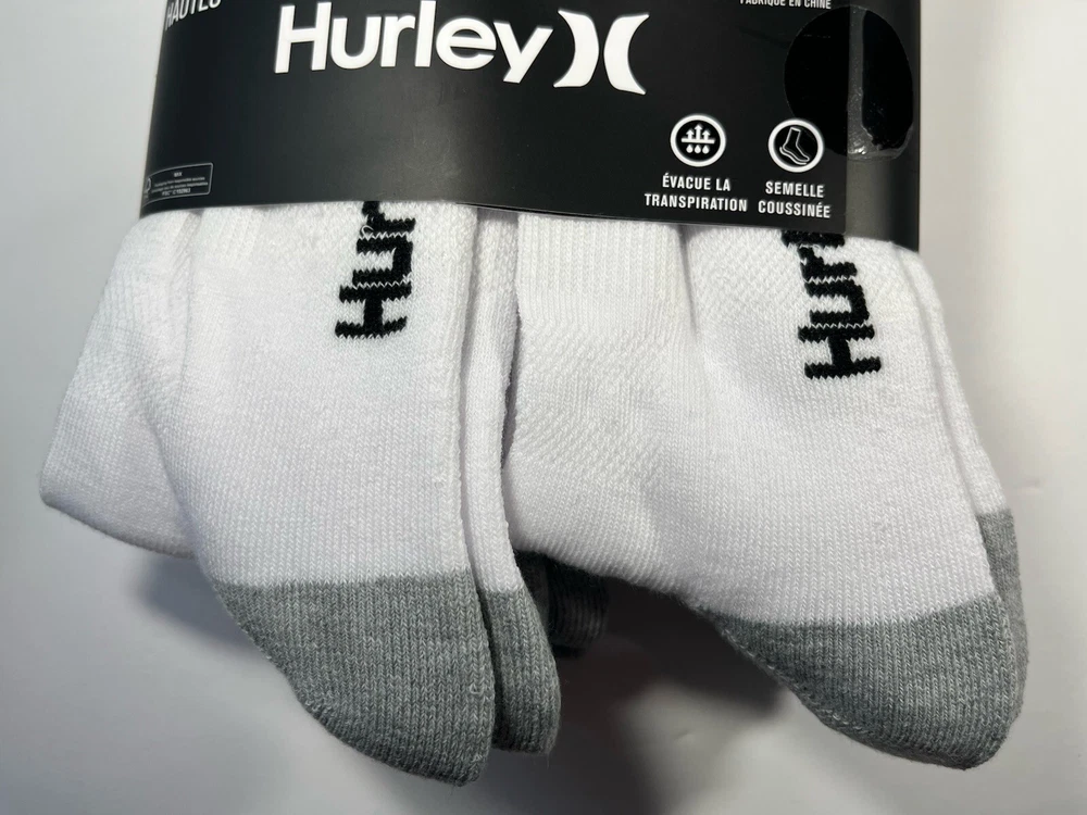 The Hurley Cushioned Crew Socks are a set of 6 pairs designed for men in sizes 8-12. These ultra-soft socks are made of polyester and spandex, providing a comfortable and stretchy fit. The white socks feature a crew length and come with cushioning for added support during various activities like gym training, cycling, golf, baseball, and more. With a machine-washable design, these Hurley socks are suitable for a range of sports and casual wear, making them a versatile addition to any wardrobe.