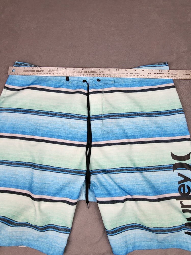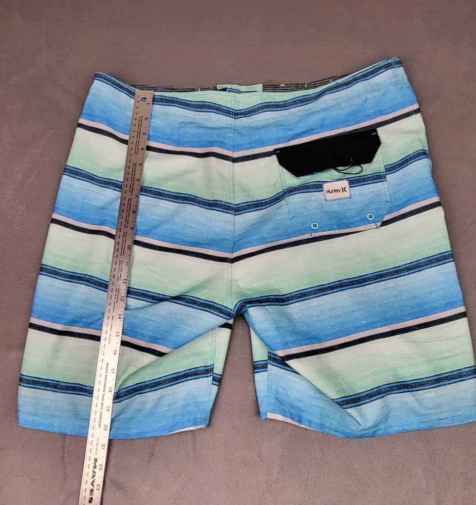 Hurley Phantom Board Shorts Mens 36 Blue White Striped Swim Trunks Surf Beach